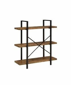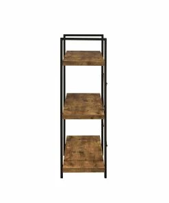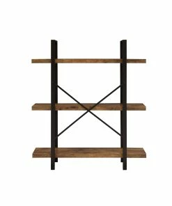 An exceptional style rustic bookcase will soon improve your living area or office. A sturdy geometric frame provides an open and airy feel. Three roomy shelves with thick construction provide a sturdy place to display your favorite books. The cross back design provides additional support and aesthetic flair. This piece is constructed from materials such as steel and engineered veneer.