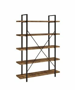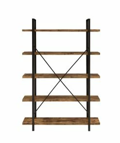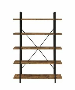 This new incredible rustic bookcase will instantly improve your living area or office. Spacious shelves provide plenty of storage for your book collection on this five-shelf bookcase. The cross back design provides additional support and aesthetic flair. This rustic bookcase is constructed from materials such as steel and engineered veneer. Use it as a bookshelf or room divider.