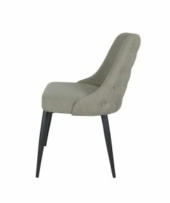 A retro-inspired twist to a traditional silhouette, this pair of side chairs is ideal for transitional dining spaces. With a comfy cushioned seat wrapped in a soft fabric upholstery, each chair features offers long-lasting comfort and relaxation. An elegantly curved backrest offers classic button-tufted exterior and a smooth interior, along with sloping arms. Resting on slim tapered legs that have a subtle flare, these chairs lend a mid-century vibe. Compact by design, slide these chairs up to a four-top table in a small dining space.