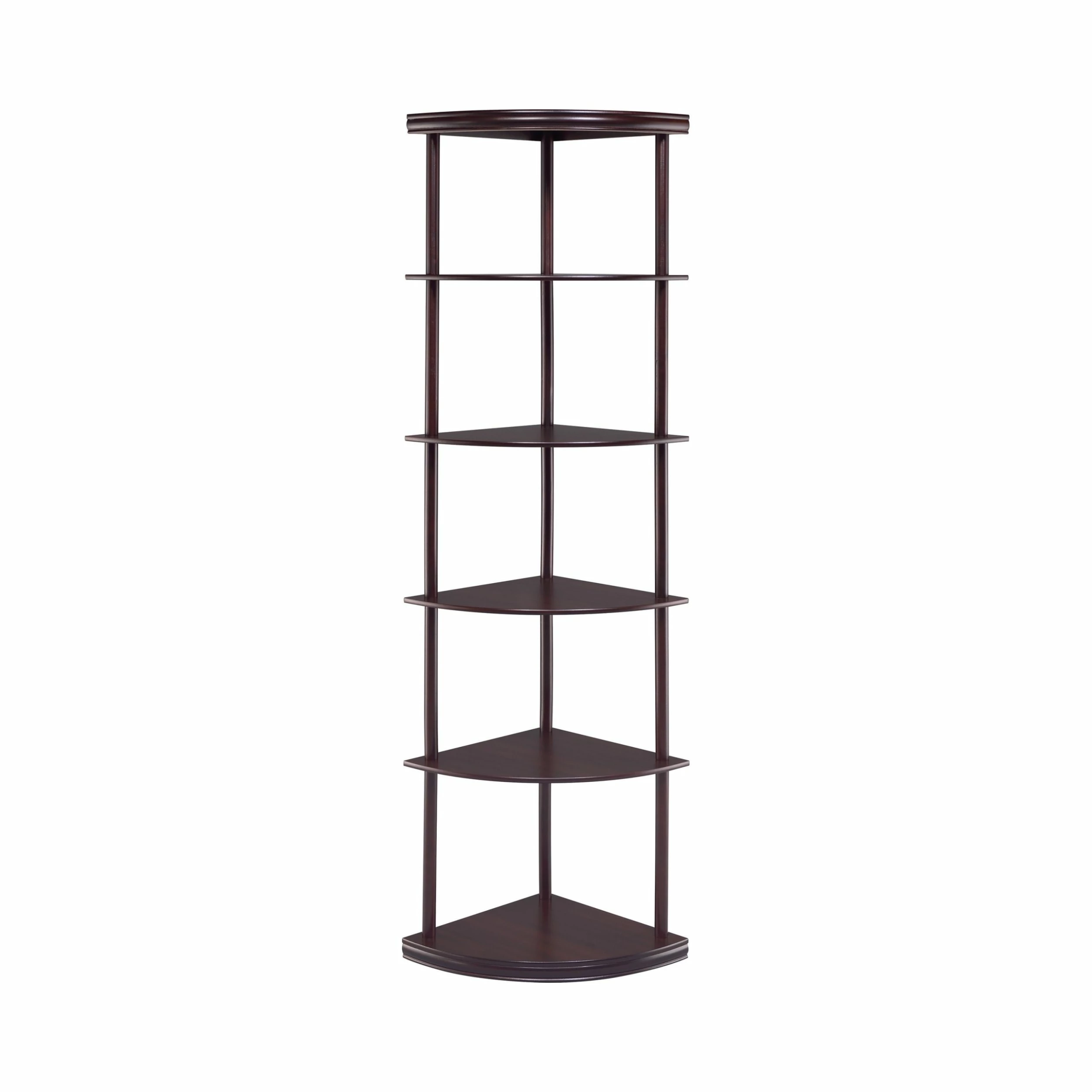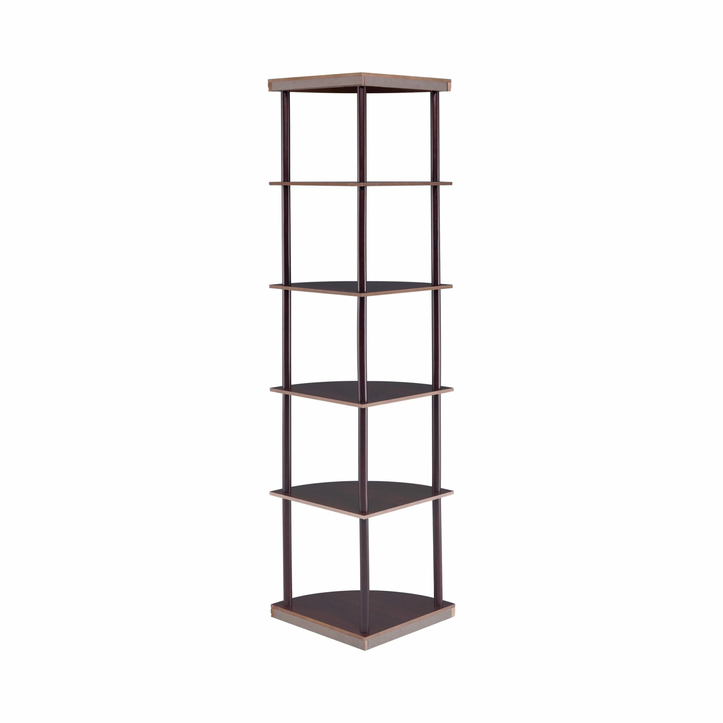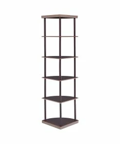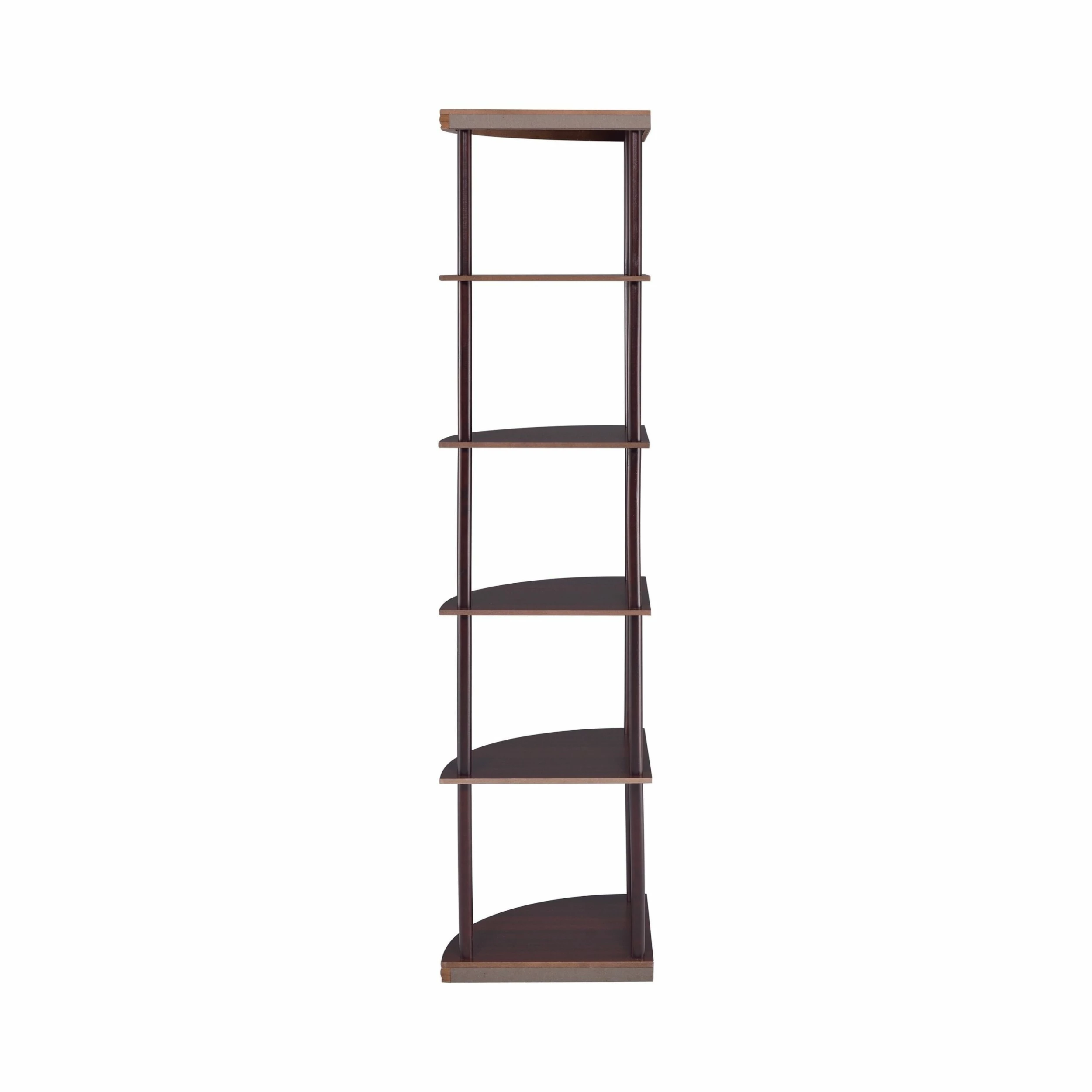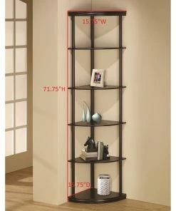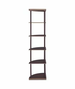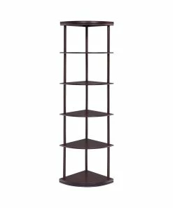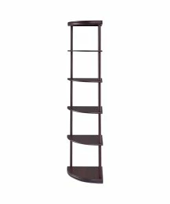 Make use of corner space with this slender bookcase. The slim profile and open design heighten the modern tone of your interiors. Five shelves provide plenty of display space for sculptural accents, special pictures, and interesting readings. Made from rubberwood and MDF and covered with a lovely cappuccino finish, this bookcase is as sturdy as it is dazzling.