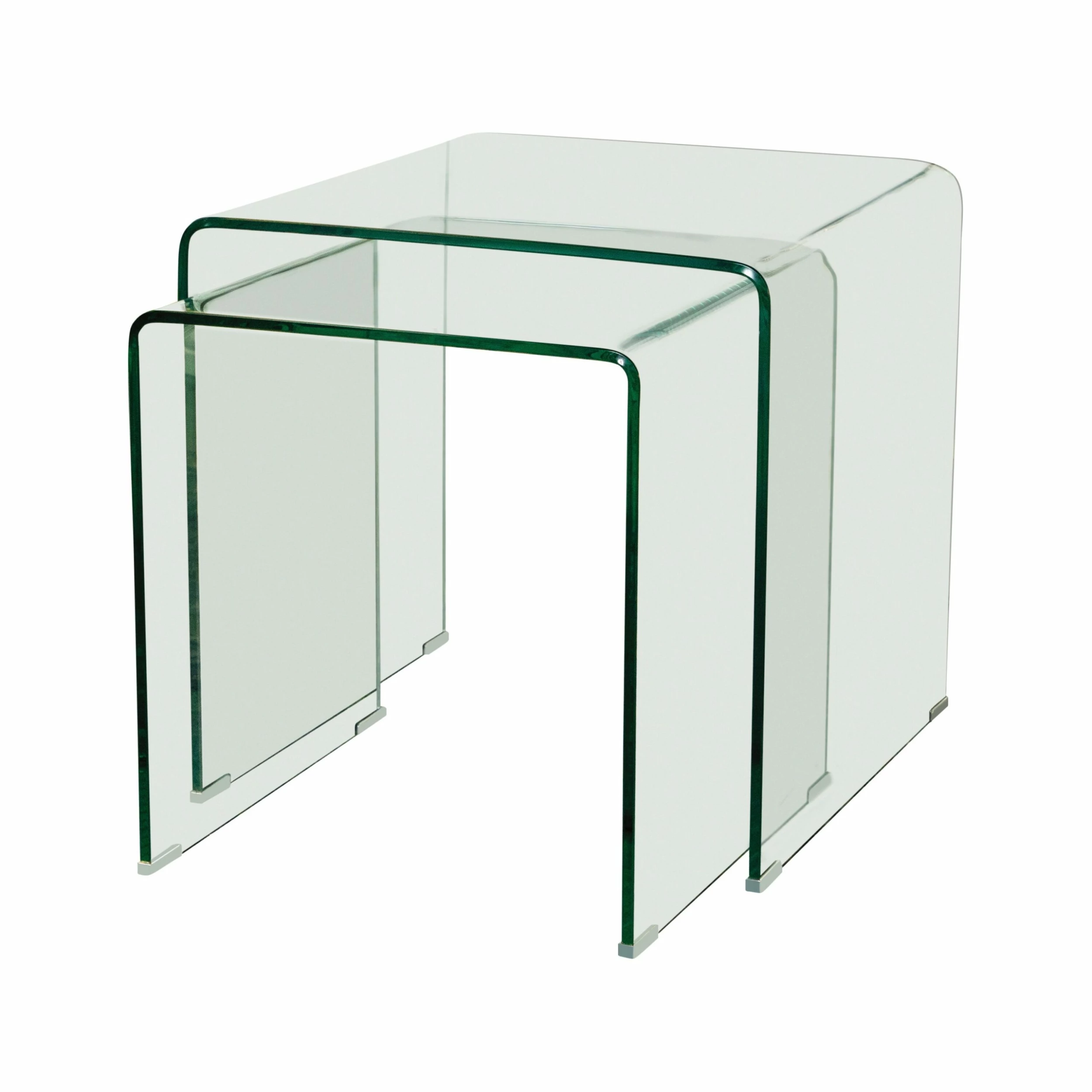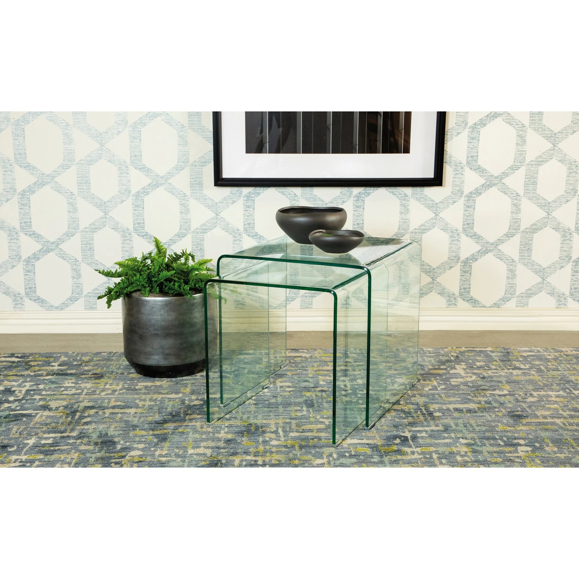This two-piece nesting table offers a chic seamless aesthetic that works wonderfully with many styles. Made of a clear tempered glass, each table features elegant, soft waterfall edges. An open base allows you to place extra decor pieces beneath, showcasing them through the glass. Perfect for a modern seating area or contemporary home, this sleek nesting table set can be separated for additional table surface or slid back into place for extra floor space. Add this nesting table beside an accent chair for an ultra-modern flair.