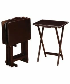 Create extra table space in your home with the help of this set of four tray tables and stands by Coaster. Solid wood constructions ensures increased longevity and durability with light assembly. This set of tables feature a folding function that offers you an easier way of storage and movement.