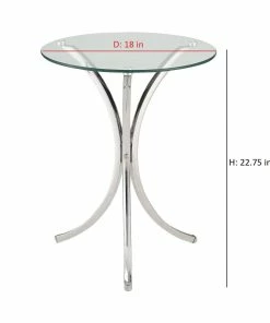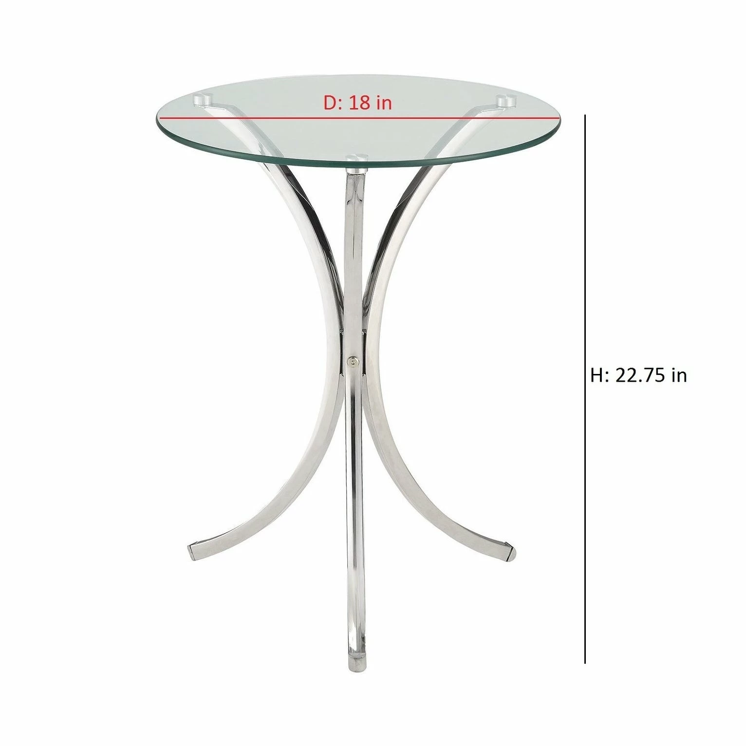 Serve hors d’oeuvres on their own dedicated surface with this Coaster Company chrome and tempered glass snack table. The sleek and modern tri-post curved base design features a brilliant chrome finish for added flair, while the tempered glass table top provides the rigid strength needed to support platters of snacks and appetizers or drinks.