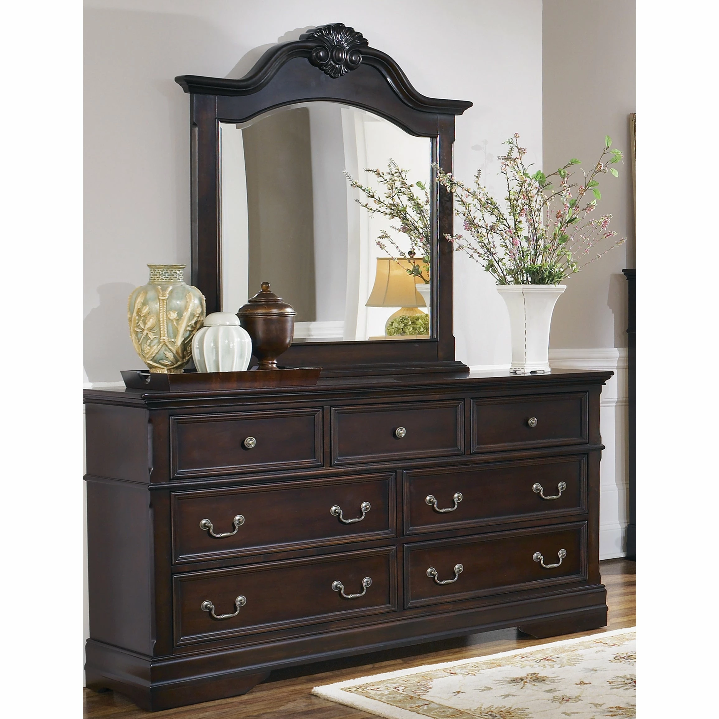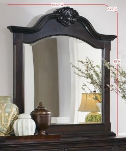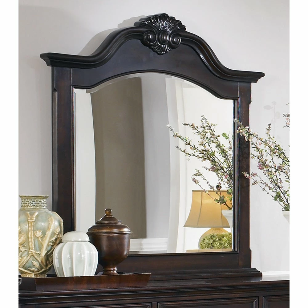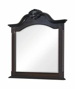 Constructed from wood and okoume veneers, the style of this beautiful mirror is somewhere between classic and contemporary. The molded and curved top features a dramatic sea shell carving detail that is elegant. Complete your home decor with this framed beveled mirror.