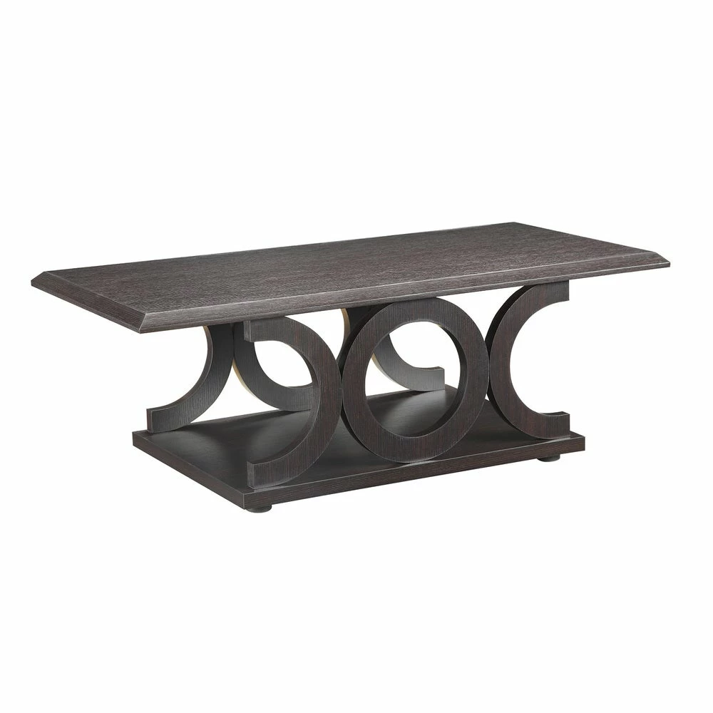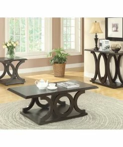 Spruce up your living space with the dark cappuccino finish and modern styling of this coffee table from Coaster Fine Furniture. Constructed with MDF and particle board, this lightweight table comes fully assembled for immediate use in your den, living room, or parlor. The solid-panel base creates room for storing magazines, books, and knickknacks.