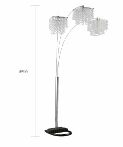 Liven up your room with this chic chrome-finished three-light floor lamp by Coaster. Rows of dangling crystal accents bring some sparkle and a touch of sophistication to your room, and the black bottom base completes the elegant look while providing sturdy support.