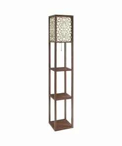 Light your home with this single-light floor lamp from Coaster. Crafted to be tall and compact, this modern lamp has three shelves built onto the bottom of the lamp that provide storage or display space. Delicate scrolling accents the white shade and offers a sophisticated touch to the lamp, while the metal construction ensures durability and strength.