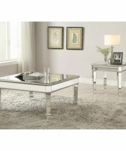Dimensional effects with a glamorous feel are hallmarks of this transitional silver end table, a beautiful choice for an upscale space. Silver finish wood trim joins mirrored panels to deliver a stunning look with surprising versatility.