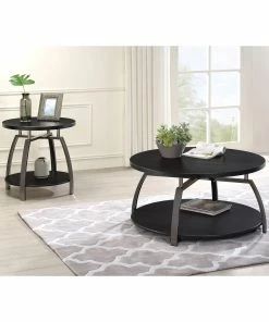 All guests will complement the stunning style of this contemporary coffee table. A dark grey finish makes this a versatile piece with a stunning presence in your space. Supported on a dramatically angled base, the metal construction is durable and attractive. Find a center shelf to display your favorite decor and small baskets. Use this dark grey coffee table next to an armchair for upgraded style.