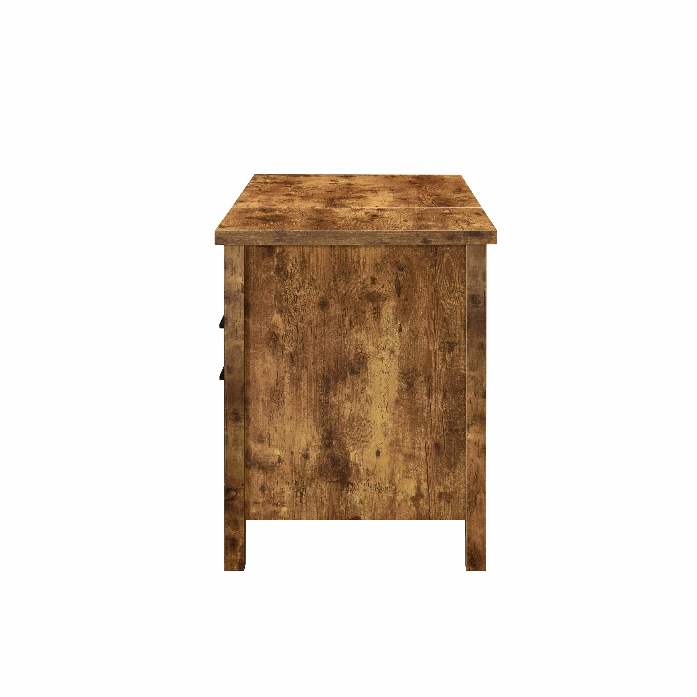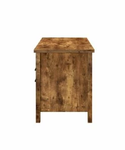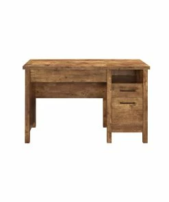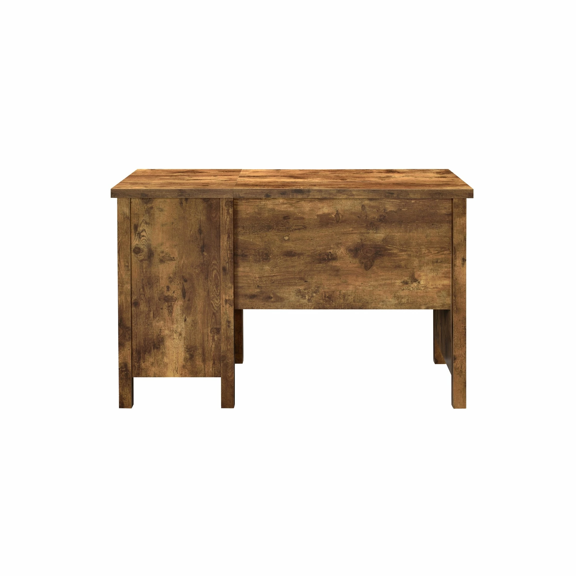 Exceptionally stylish and rustic, this lift-top writing desk offers plenty of style and function. Its lift-top design allows you to easily store items within. A small shelf provides another area for extra storage space. Put larger items inside the two drawers with black bar pulls. This piece is finished in a lovely antique nutmeg and supported on block style legs.