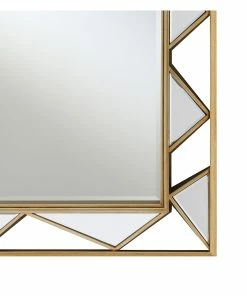 Make an immaculate display with addition of this contemporary gold mirror. Its stunning frame is crafted in a geometric pattern for all to admire. Rectangular in shape, this wall mirror is bound to enhance your space. Use it to add a chic appearance in entryways or living areas. This piece is crated from glass and metal.