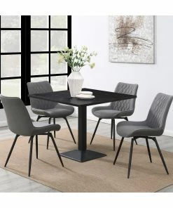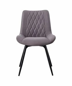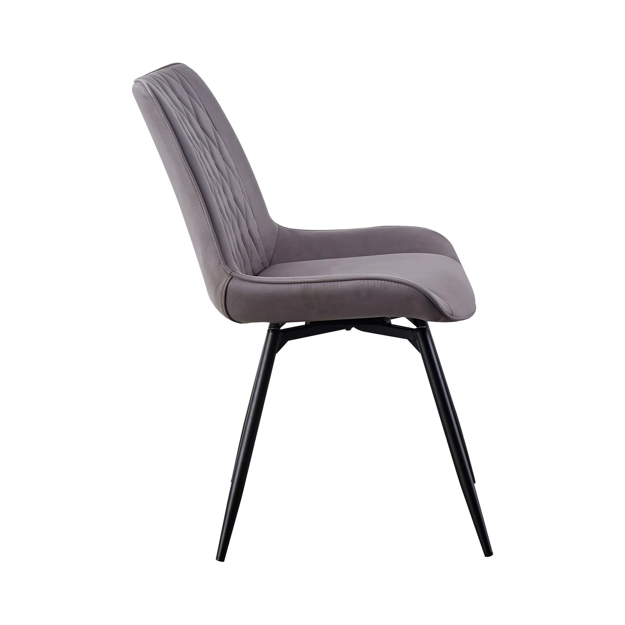 Wrapped in fabric with a diamond quilted interior strip, this pair of dining chairs offer a neutral color that works well with existing decor. Slim tapered and flared legs in a gunmetal finish lend a retro-inspired vibe, while the padded bucket seat offers comfort and long-lasting support for casual snacks at kitchen nook or formal meals in a dining space. In addition, each chair features a cradle-like seat situated on a swivel mechanism, allowing guests to come and go easily. Place this pair of swivel dining chairs aside a small round cafe style table or complete a media room communal space, lending a funky playful flair. To add, each chair offers a tall backrest for long-lasting comfort and support while playing games and conversing over long meals.