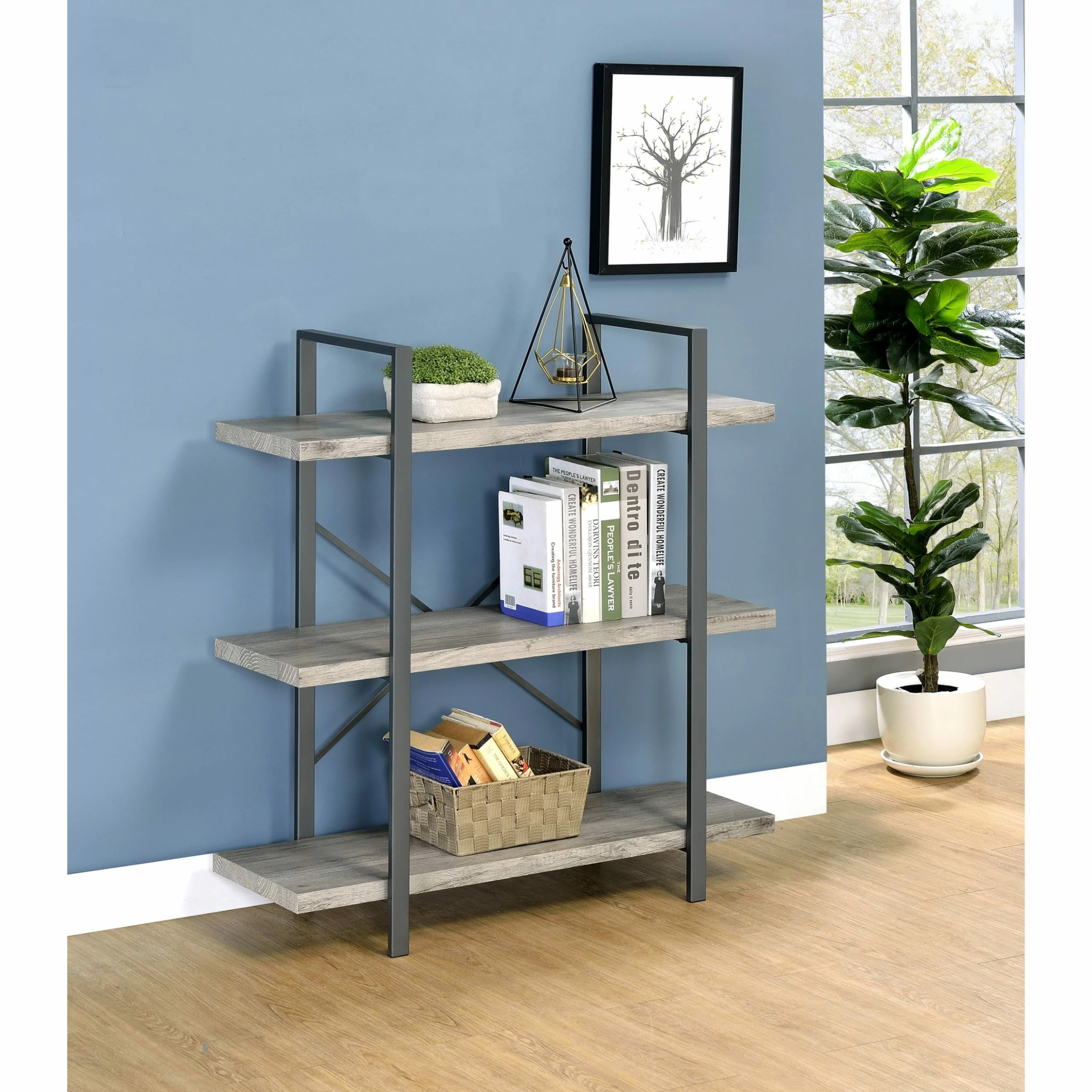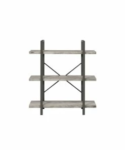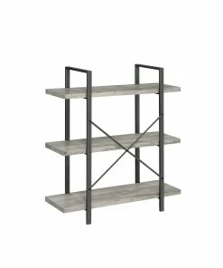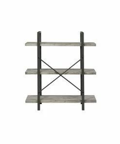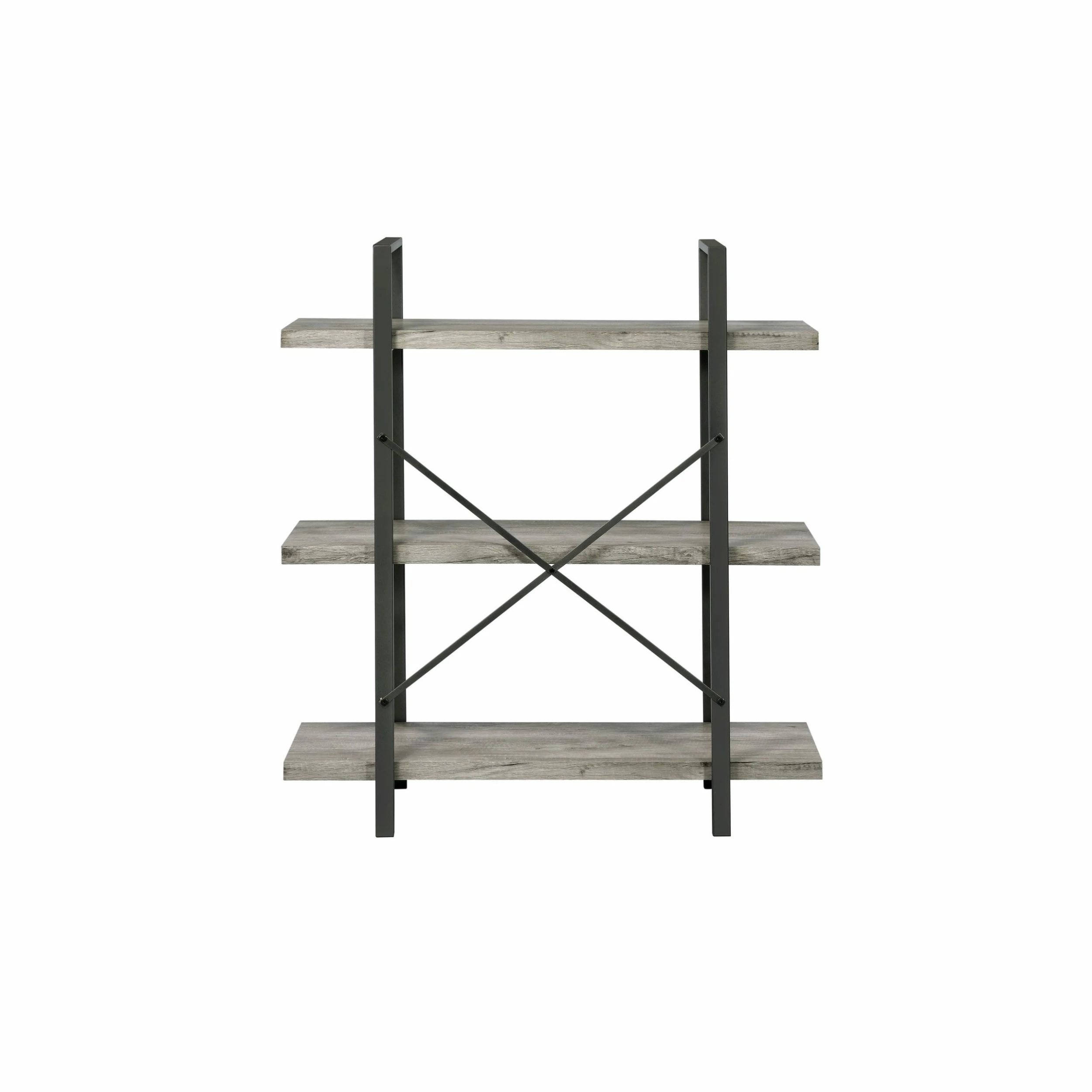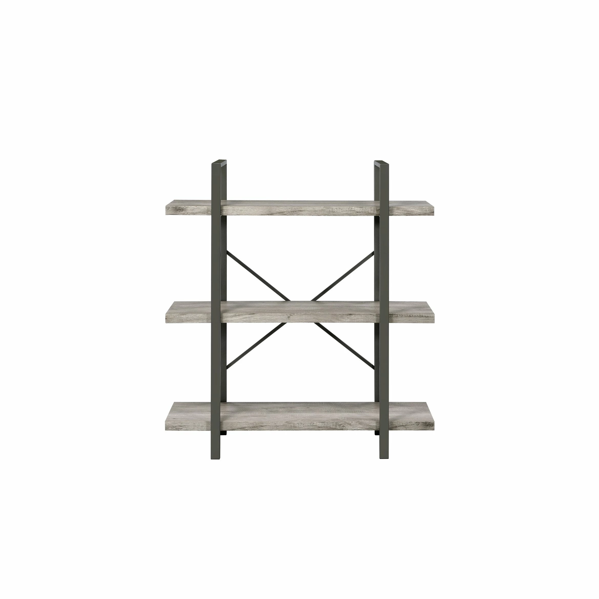 An exceptional style rustic bookcase will soon improve your living area or office. A sturdy geometric frame provides an open and airy feel. Three roomy shelves with thick construction provide a sturdy place to display your favorite books. The cross back design provides additional support and aesthetic flair. This piece is constructed from materials such as steel and engineered veneer.