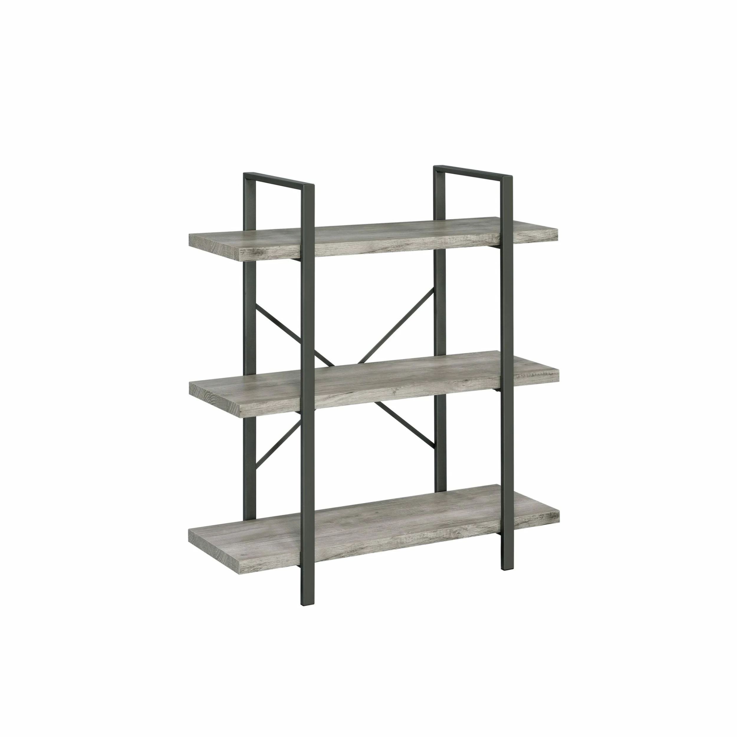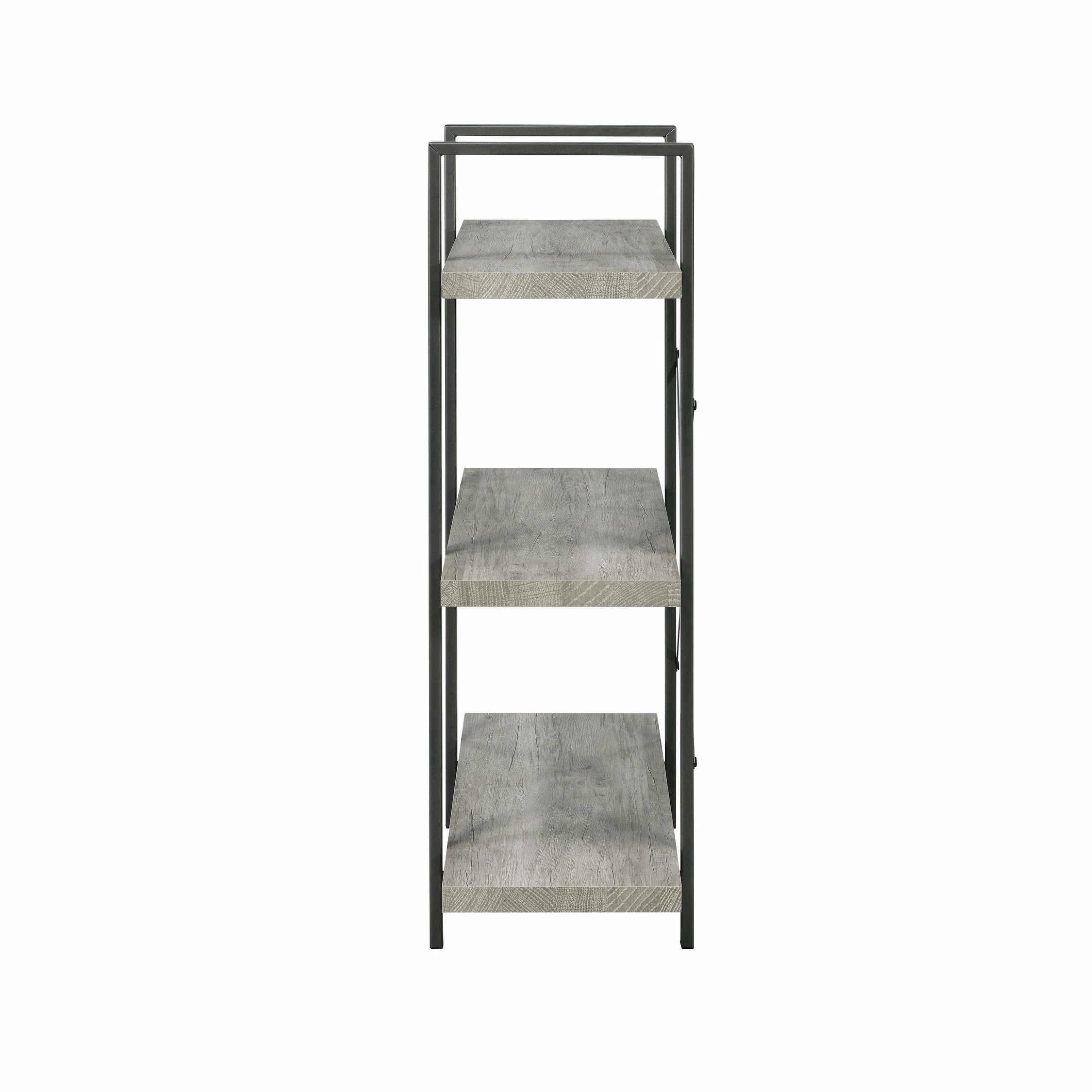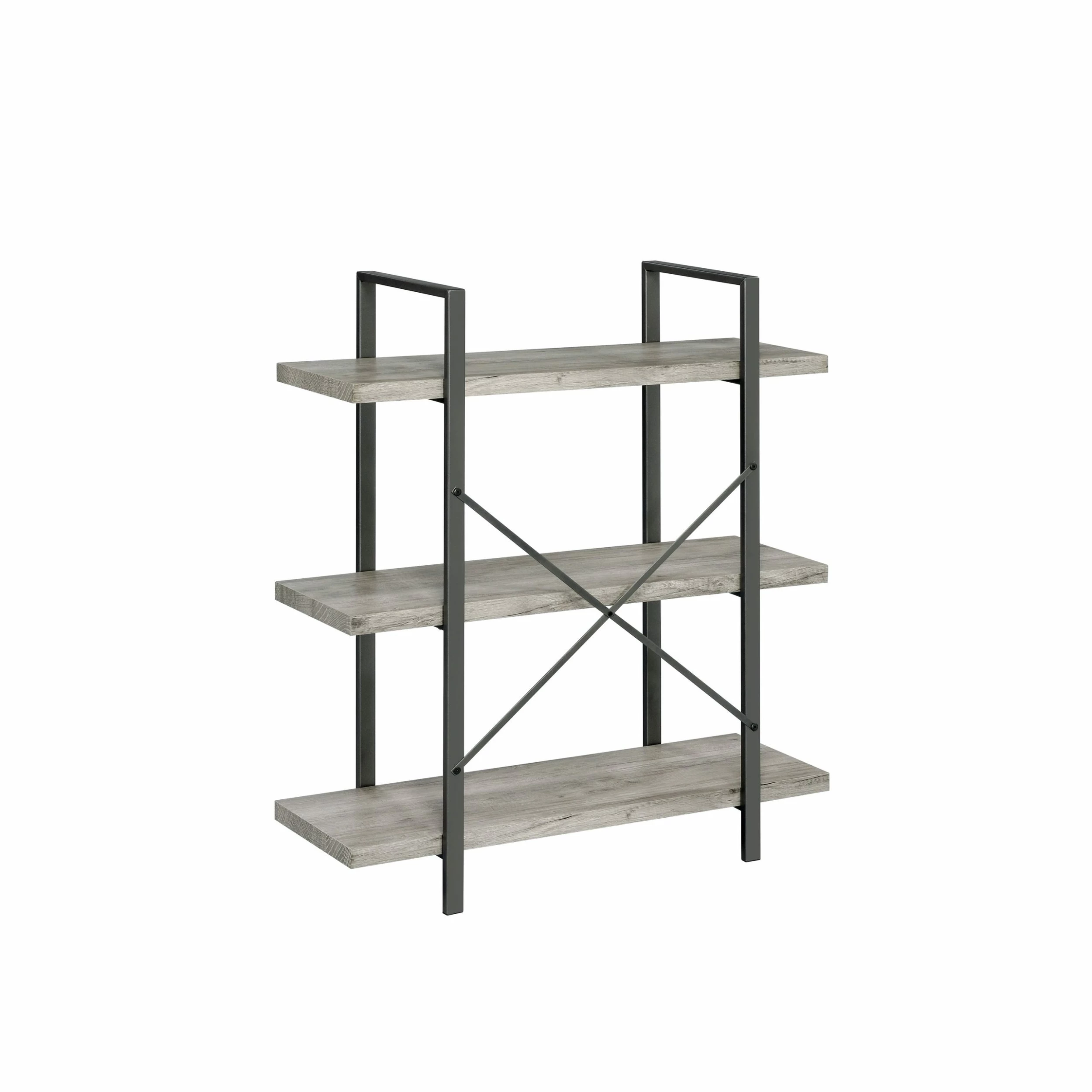 An exceptional style rustic bookcase will soon improve your living area or office. A sturdy geometric frame provides an open and airy feel. Three roomy shelves with thick construction provide a sturdy place to display your favorite books. The cross back design provides additional support and aesthetic flair. This piece is constructed from materials such as steel and engineered veneer.