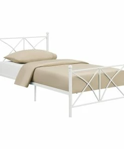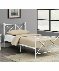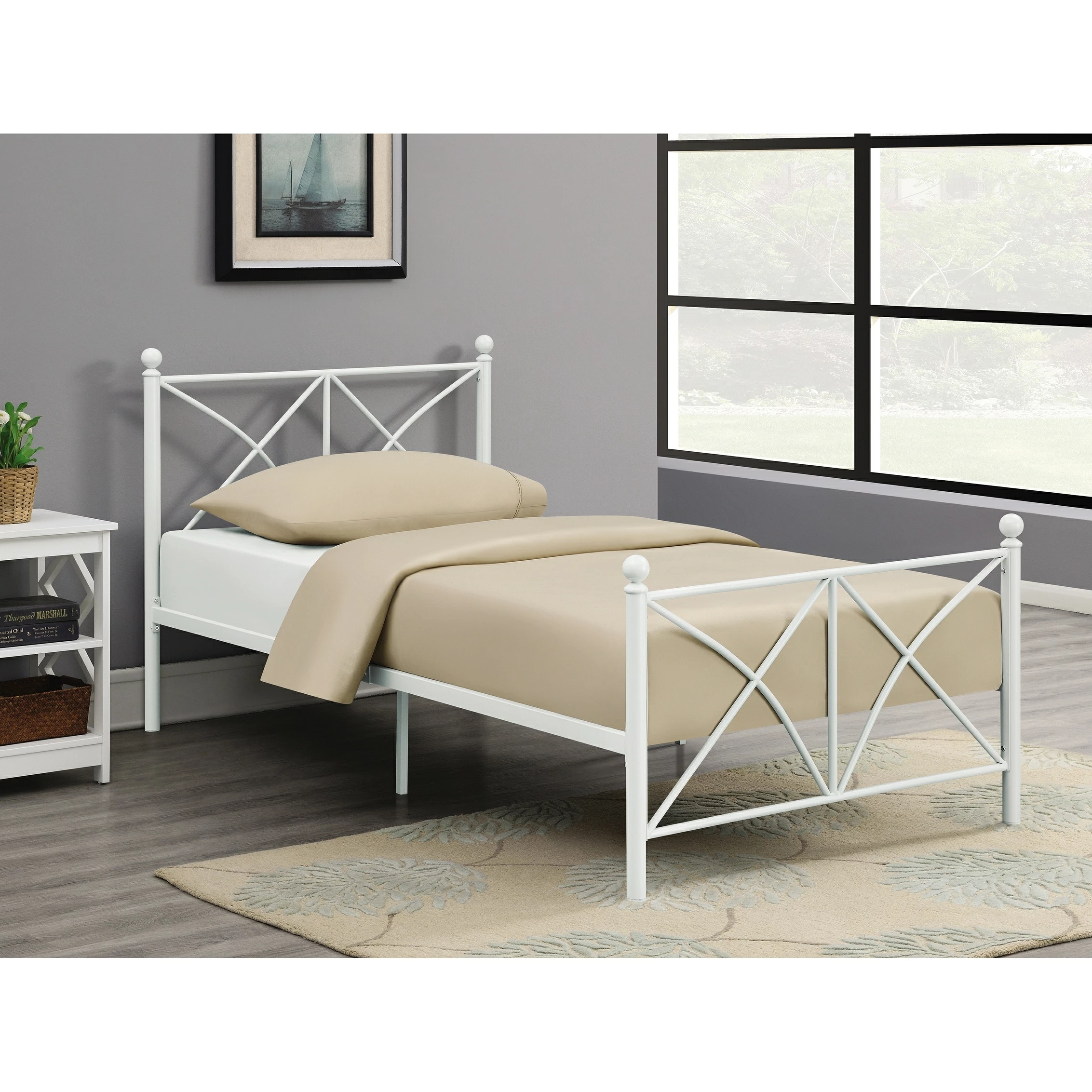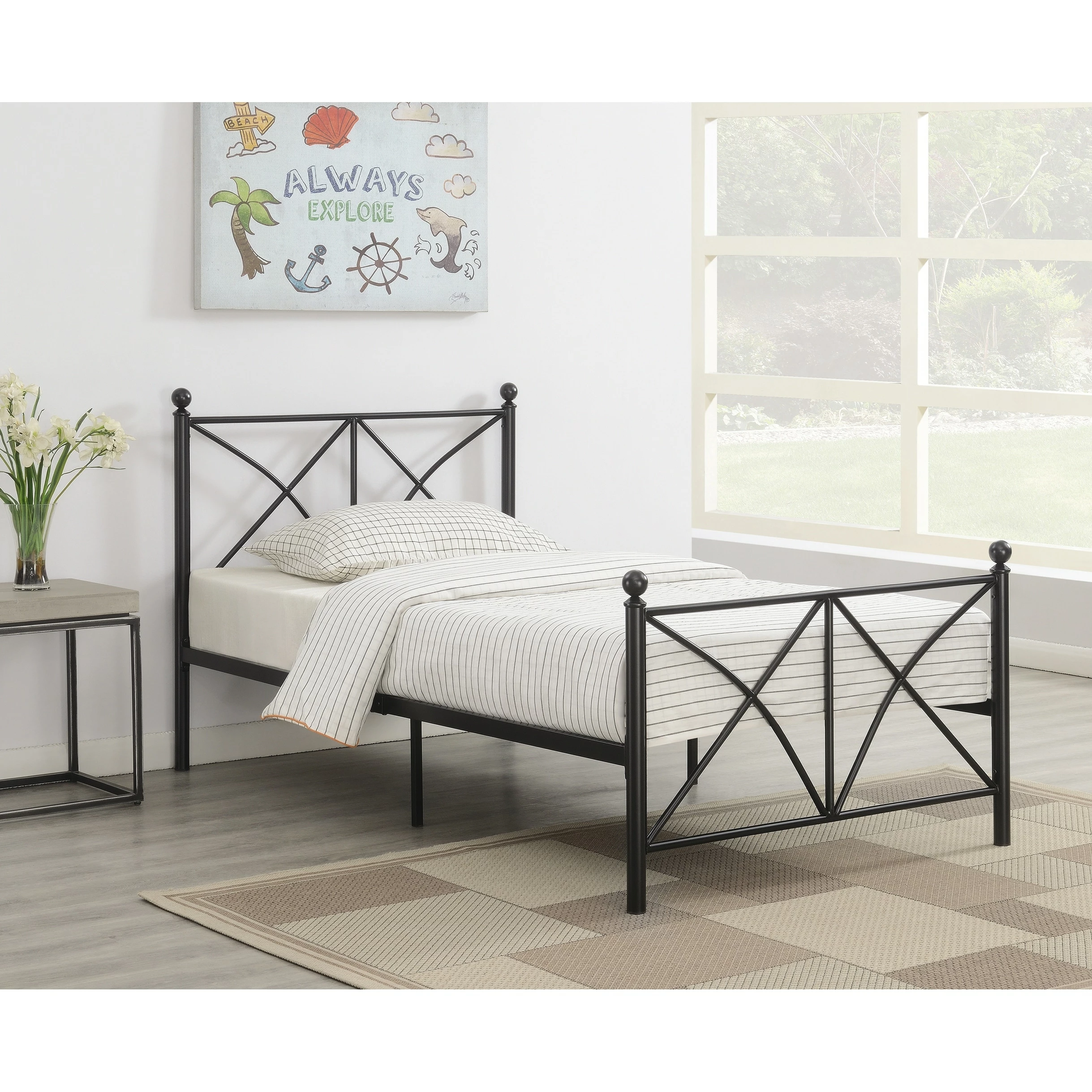 Find chic and sophisticated style with this metal bed. Coming in an assortment of styles and colors, this piece is bound to enhance many sleeping spaces. It’s X-style pattern on the head and footboard gives it modern appeal. This metal bed is ideal for using in guest bedrooms and youth bedrooms. With airy appeal and straight legs, choose this bed for function and style in transitional spaces.