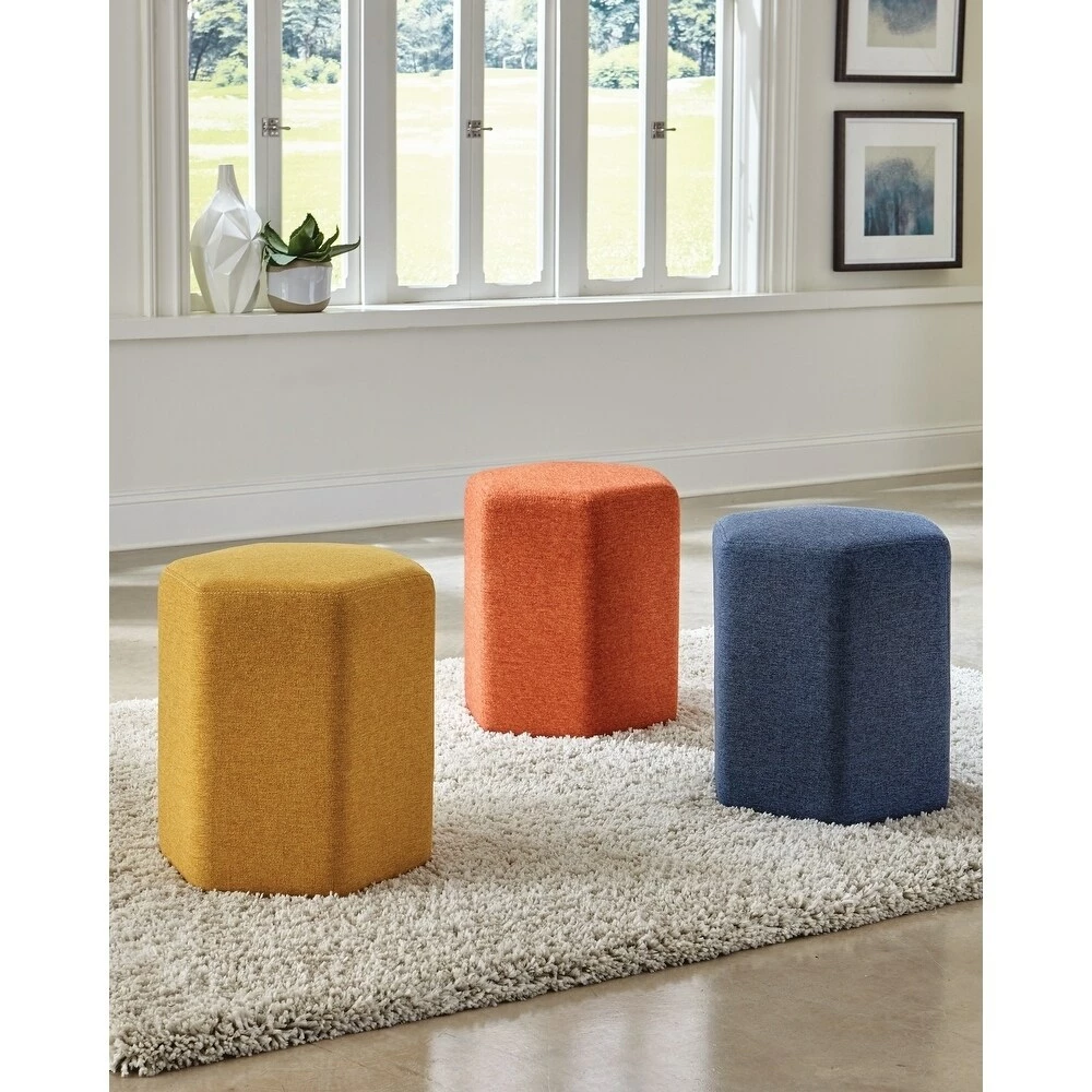 Provide quick and easy seating for your guests with this hexagonal upholstered stool. Suitable for weights up to 200 pounds, this sturdy stool features colorful and soft upholstery for an added splash of color to your living room or bedroom. Made with 100-percent polyester, this stool is easy to keep looking vibrant and fresh.