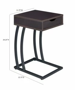 Go for a dramatic look with style and extra features, and add this cappuccino accent table to a family entertaining space. Enjoy the convenience of a pair of USB ports and a pair of power outlets along its backside, adding functionality to the fashionable look of a block top and whimsically shaped metal frame.