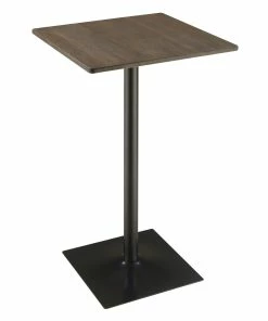 Simplicity and refined form describe the aesthetic of this industrial bar table. Fashioned from black metal and topped with a square of solid elm finish wood, it delivers a sophisticated yet casual attitude and makes a perfect spot for a snack and cocktail.