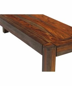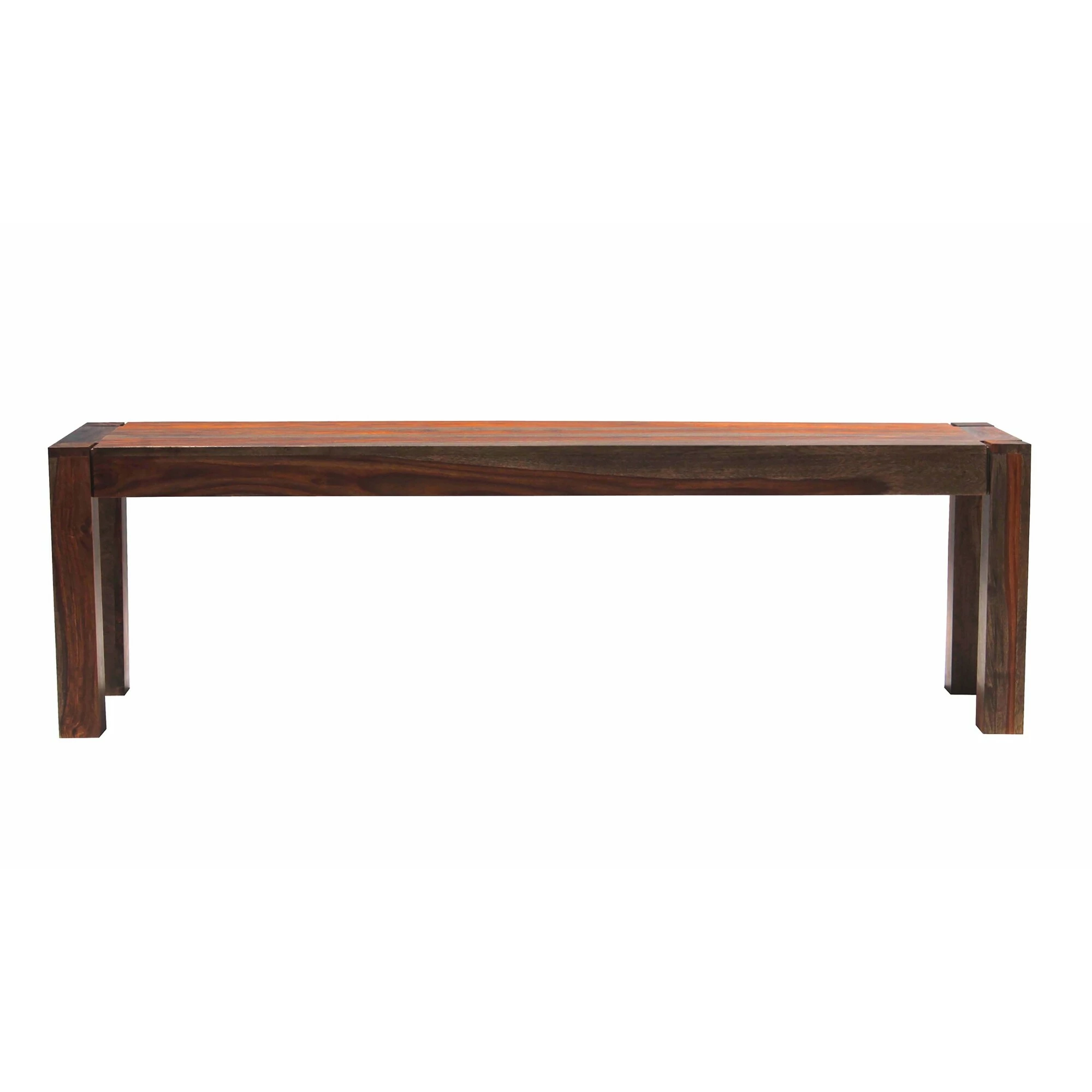 Pull up this wood bench to a spacious dining table for additional seating. With a solid wood seat, this bench offers comfortable, long-lasting seating for up to two guests. Built of solid sheesham hardwood, it features a charming warm chestnut finish. Perfect for more transitional dining space, it offers a blend of both modern and rustic styles for a casual touch but can be elevated with decorative cushions. As part of the same collection, pair this bench with the Keats dining table to complete a modern farmhouse look.