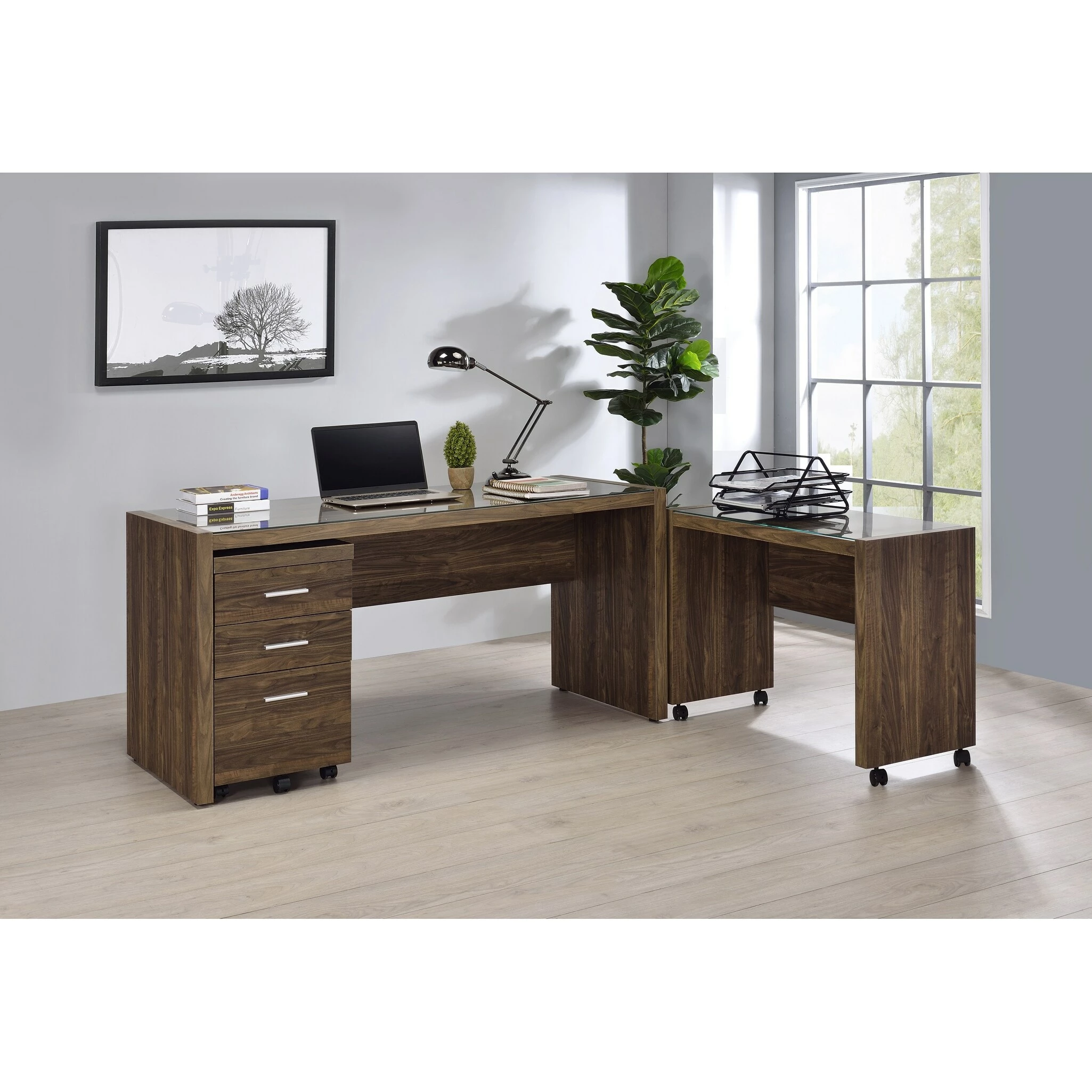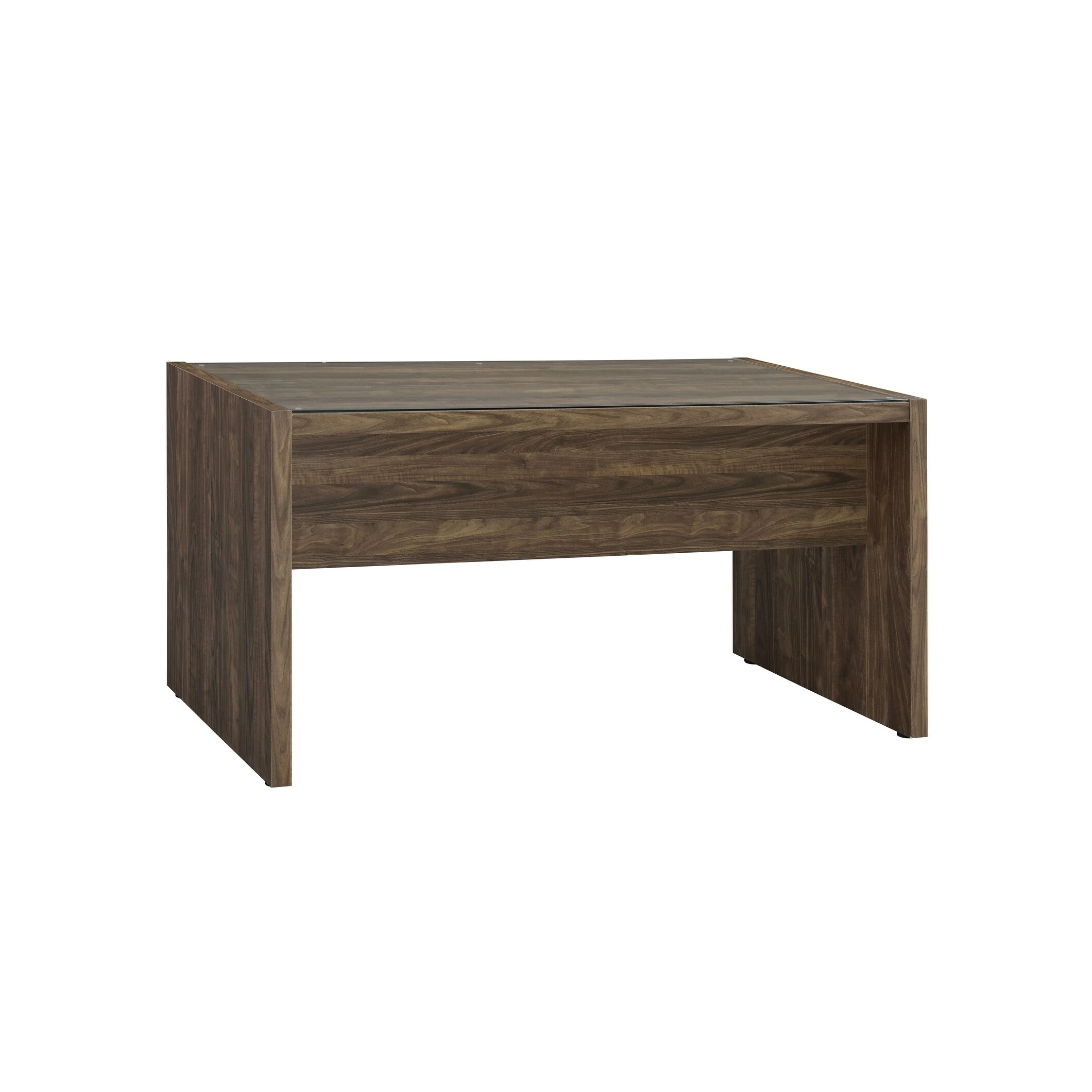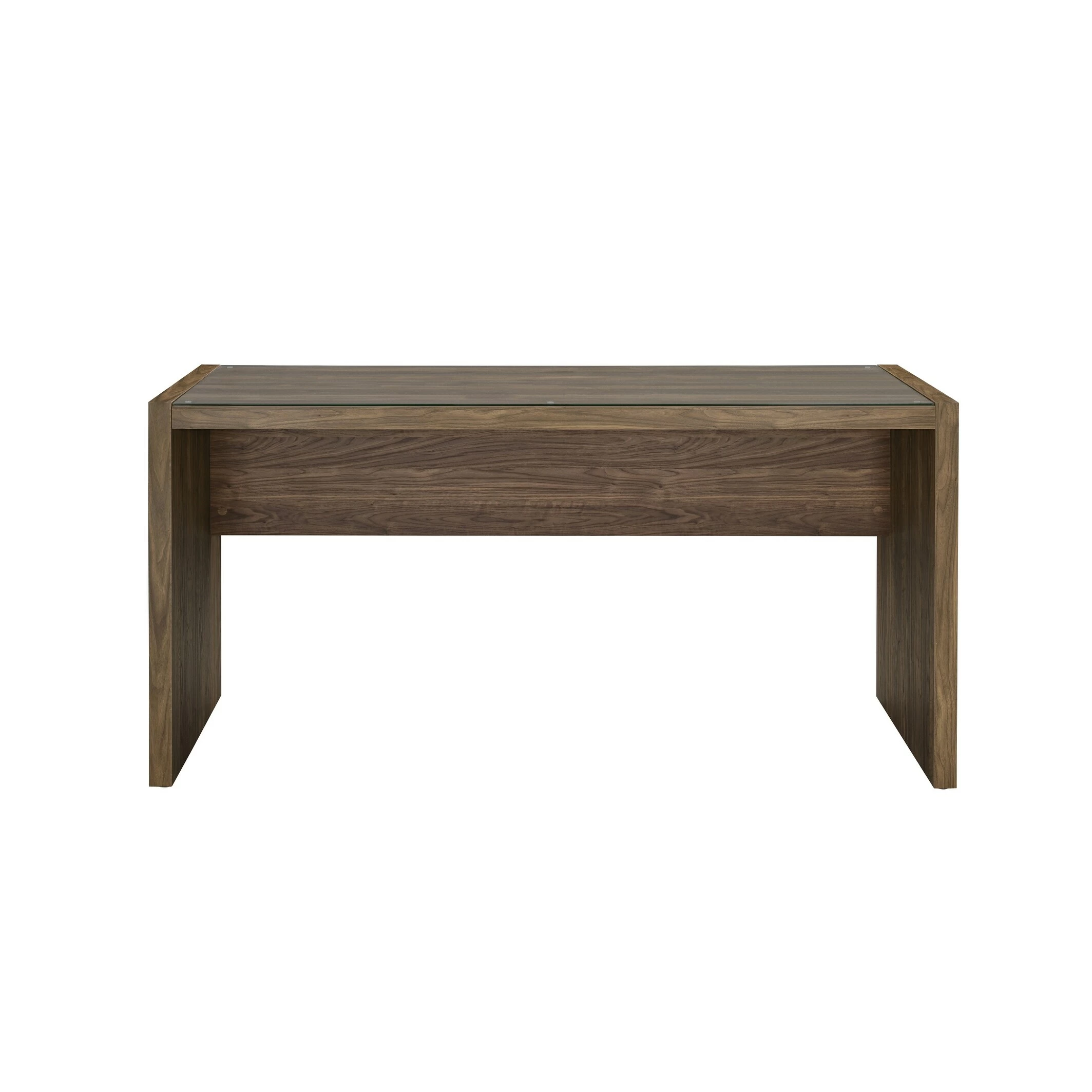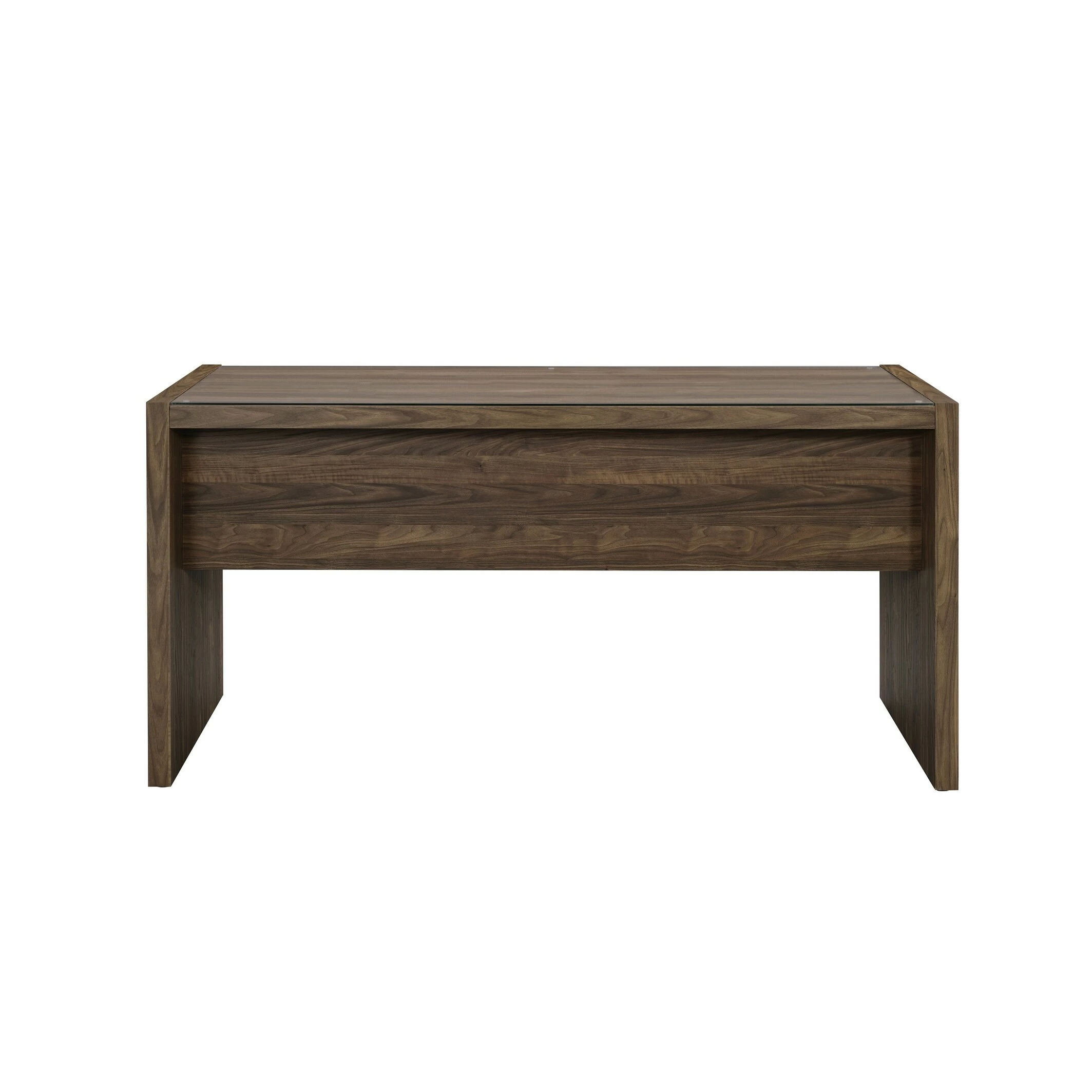 The sleek construction of this writing desk will have you doing day-long typing sessions. A simplistic rectangular tabletop is crated with tempered glass, giving plenty of room for a computer and notebooks. Slim yet sturdy legs provide incredible support. The aged walnut finish makes this a fantastic rustic style writing desk. Choose this piece for an immediate upgrade to your office.