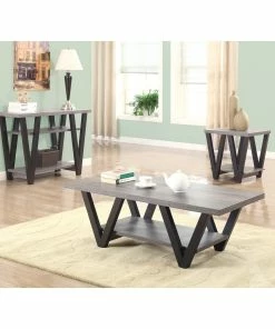 Wake up a sleepy space with this fashionable black and grey sofa table. Its tress-style construction teases a hint of mid-century modern appeal, and three separate layers of shelving make it easy to display decor accents.