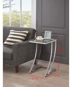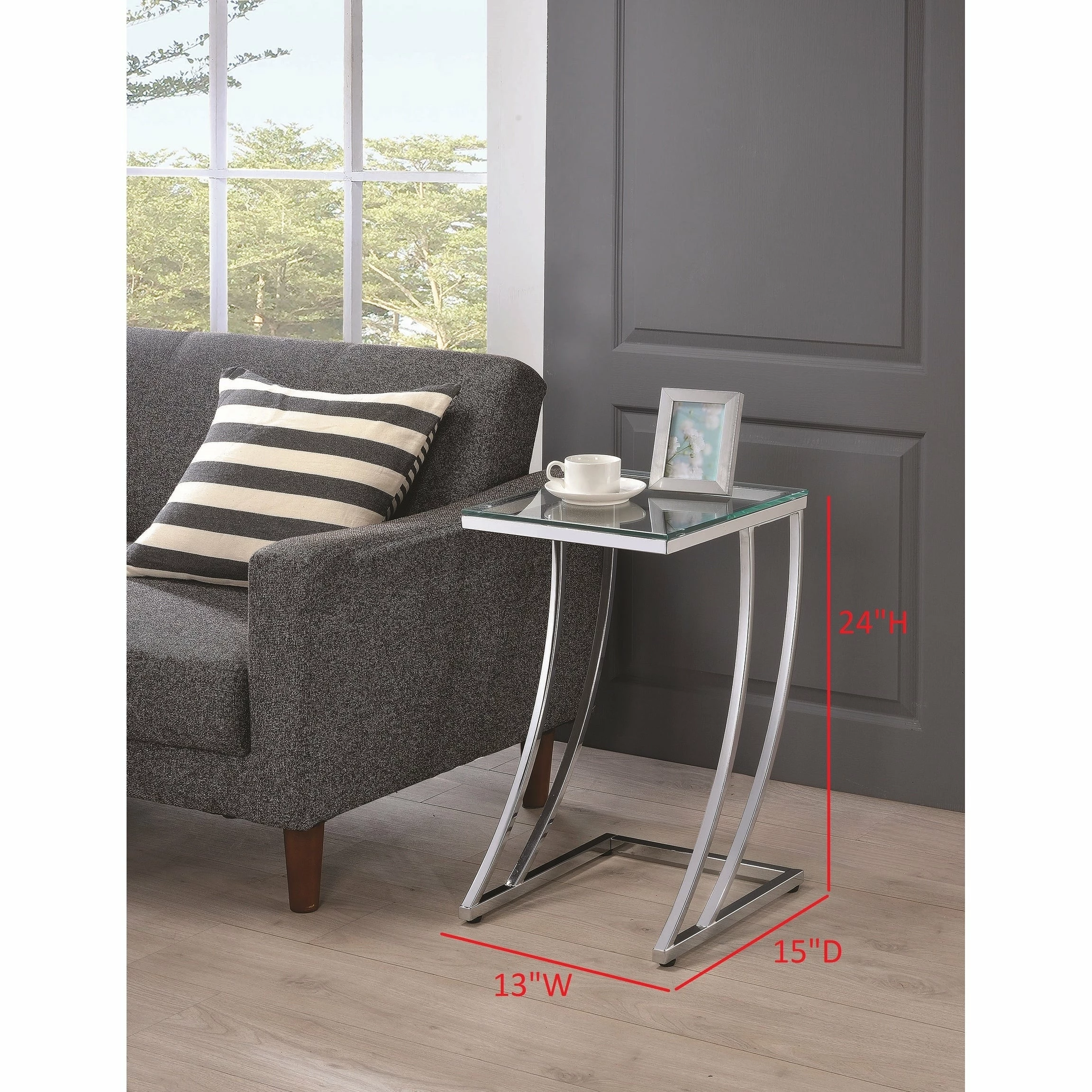 Subtle contemporary elegance is the highlight of this chrome accent table, an ideal choice for anchoring with a chair or sofa in a modern space. An eye-pleasing metal base with curved leg pieces infuses an artistic look that blends beautifully with a square glass top.