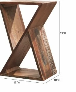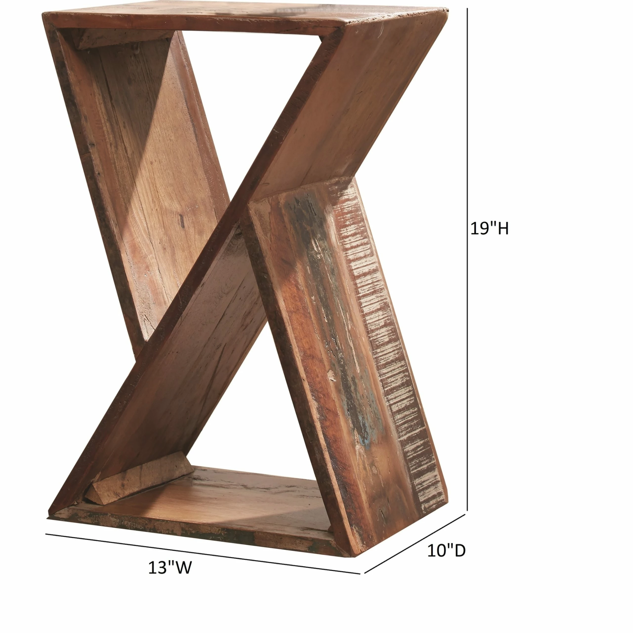 Sleek and stunning, this reclaimed wood accent table is full of geometric details. With an hourglass-inspired shape, the silhouette features two open triangles. In a natural finish, the exposed wood grain adds depth next to any sofa. Decorate the clean lines with your favorite lamp or with a vase of fresh flowers. The perfect combination of modern and rustic, this charming piece feels airy in contemporary spaces.