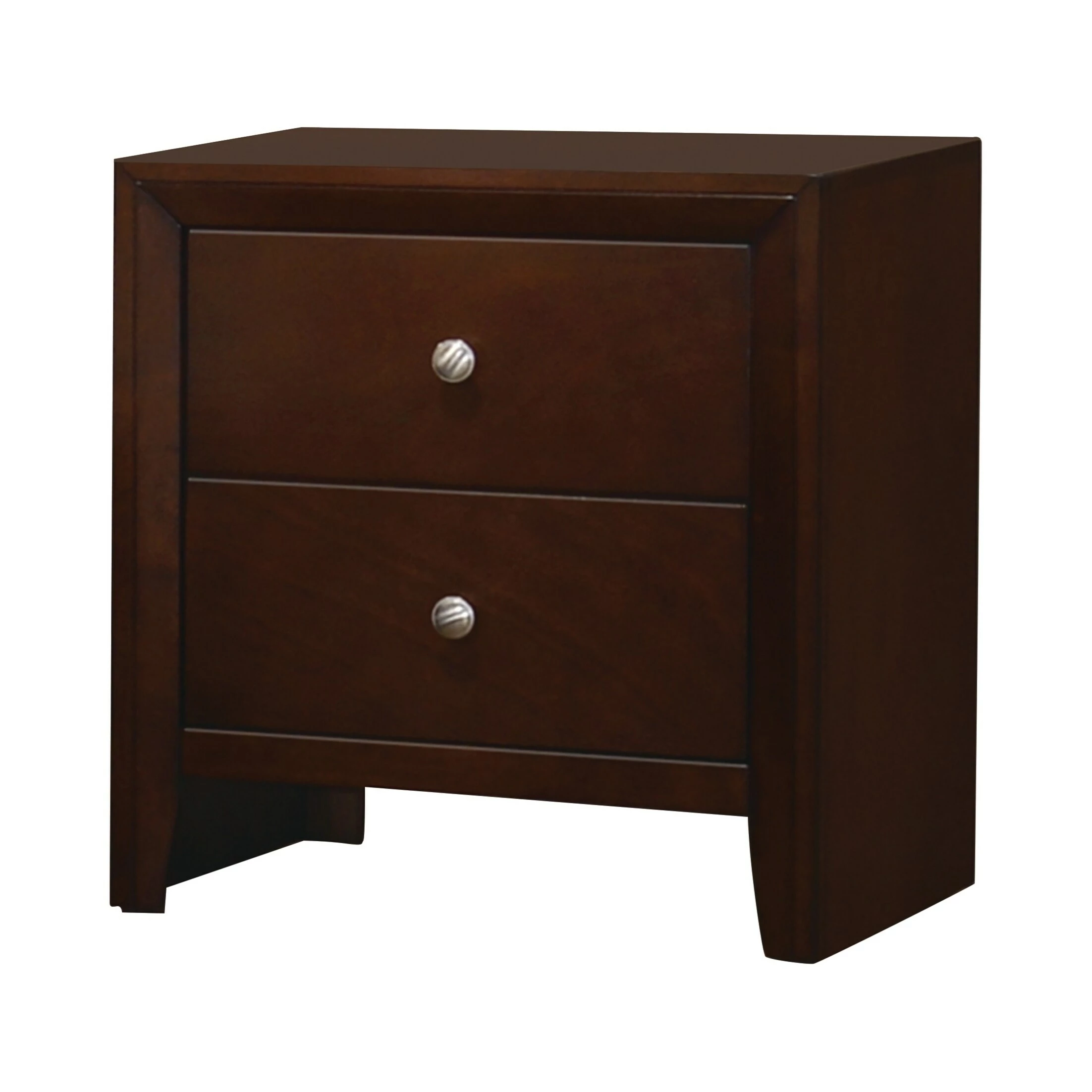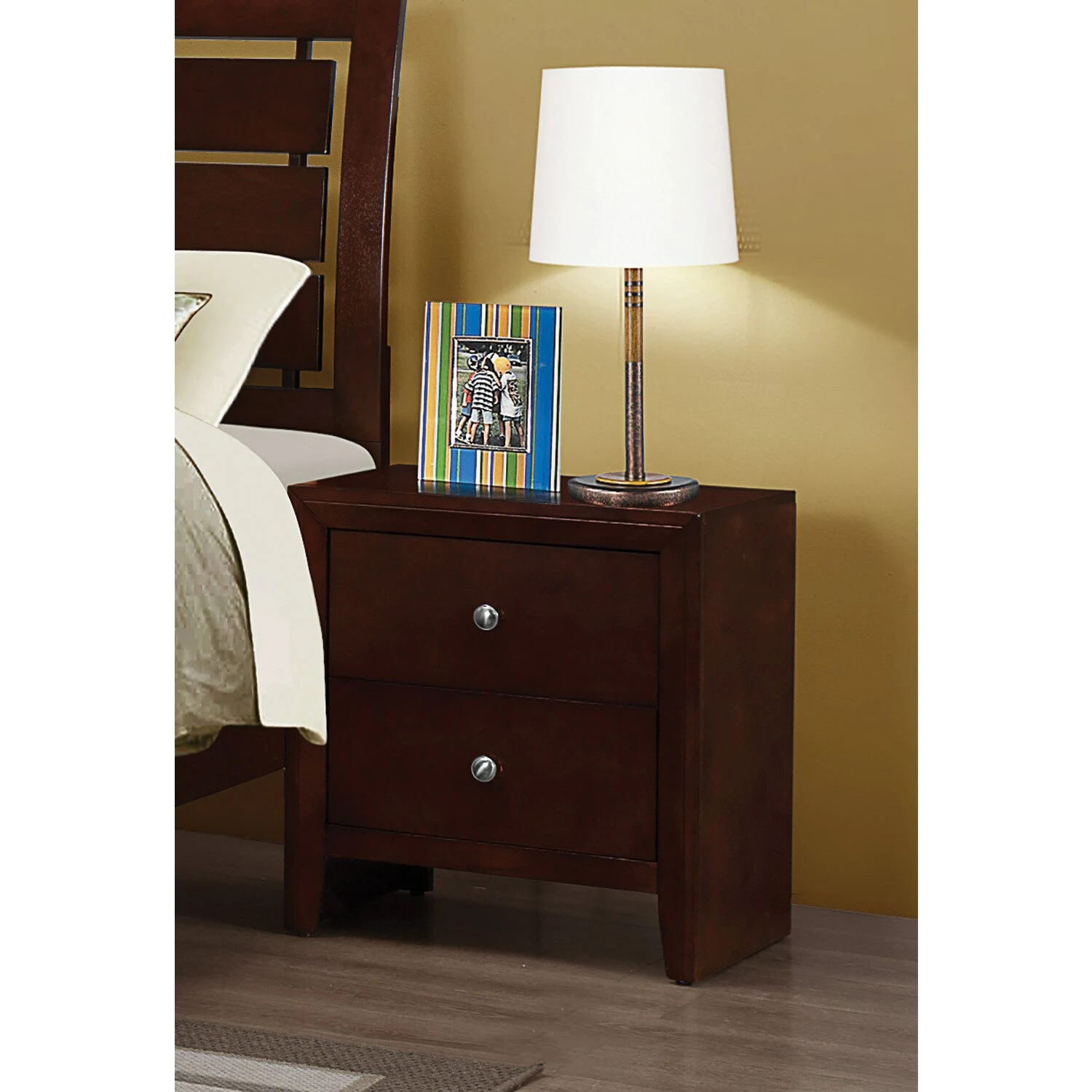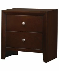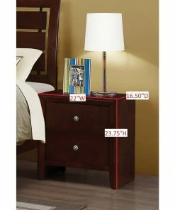 Offer convenience to before-sleep routines, this presentable and practical nightstand is your fantastic choice. This nightstand has a wide, roomy top that’s perfect for a table lamp and alarm clock or books. Store an extra fleece or your favorite nighttime reading material in the two roomy drawers. With straight lines and simple craftsmanship, this nightstand imparts an understated air. Warmly finished in rich merlot.