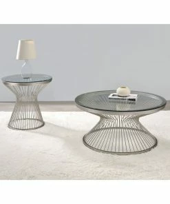 The minimal hourglass-inspired silhouette of this end table offers a striking statement piece. Perfect for a modern industrial style room, this end table works nicely beside a chair or sofa to hold a lamp and refreshments. The hourglass pedestal base offers an open, airy interior surrounded by spokes in a shiny satin grey finish. Topped by a round, tempered glass tabletop, this end table offers a glamorous flair and an understated retro vibe. With clear and metal finishes, the furniture piece lends a sophisticated, yet charming look.