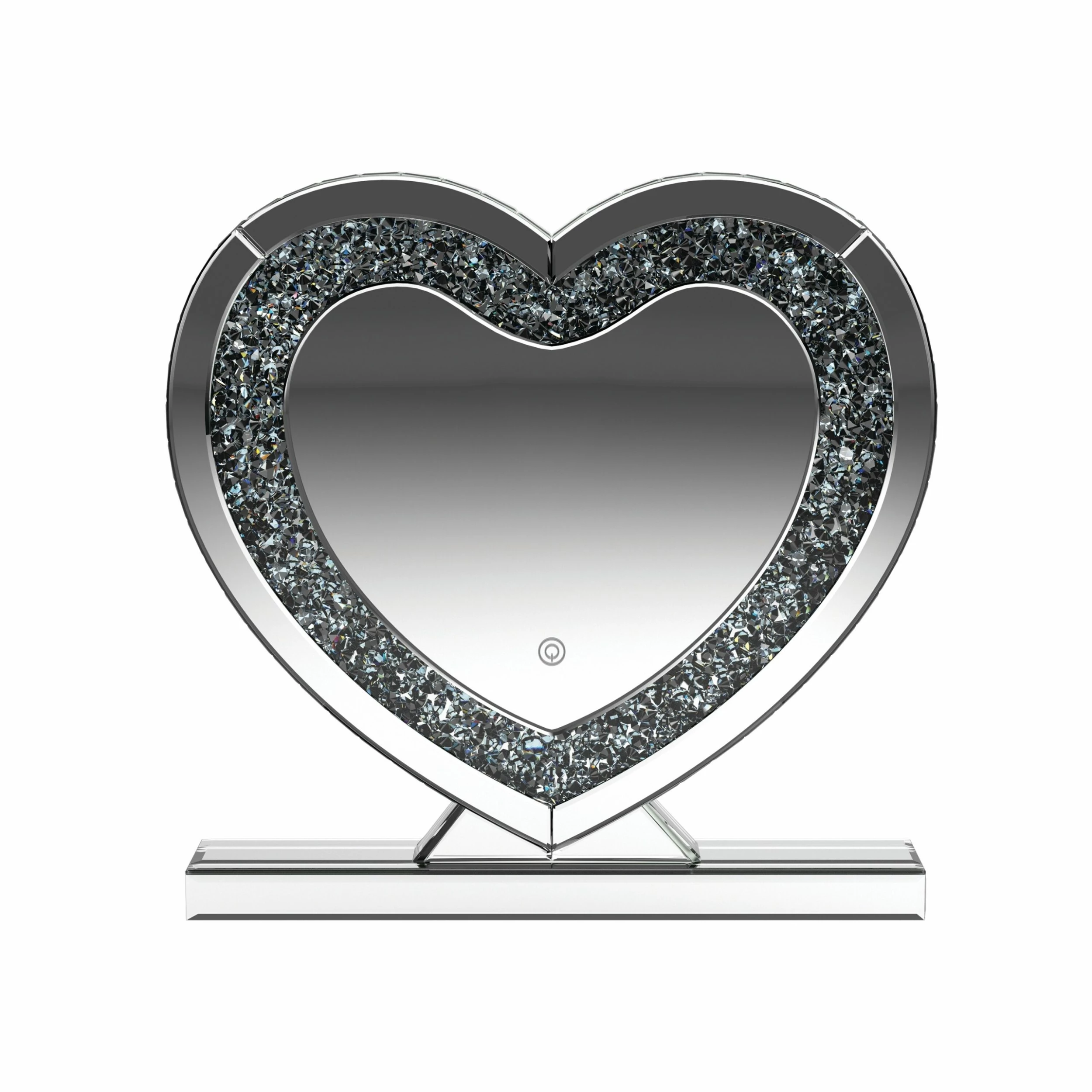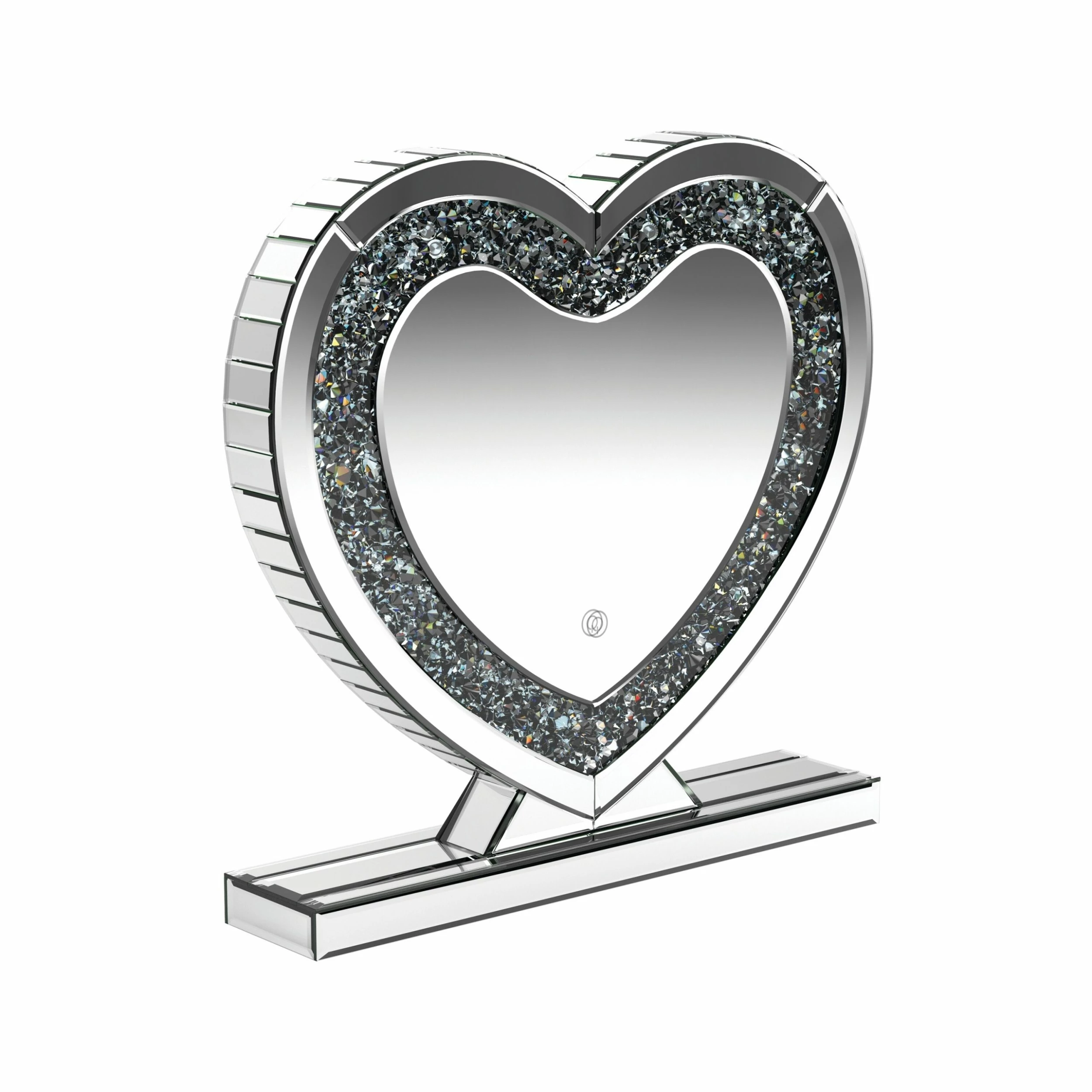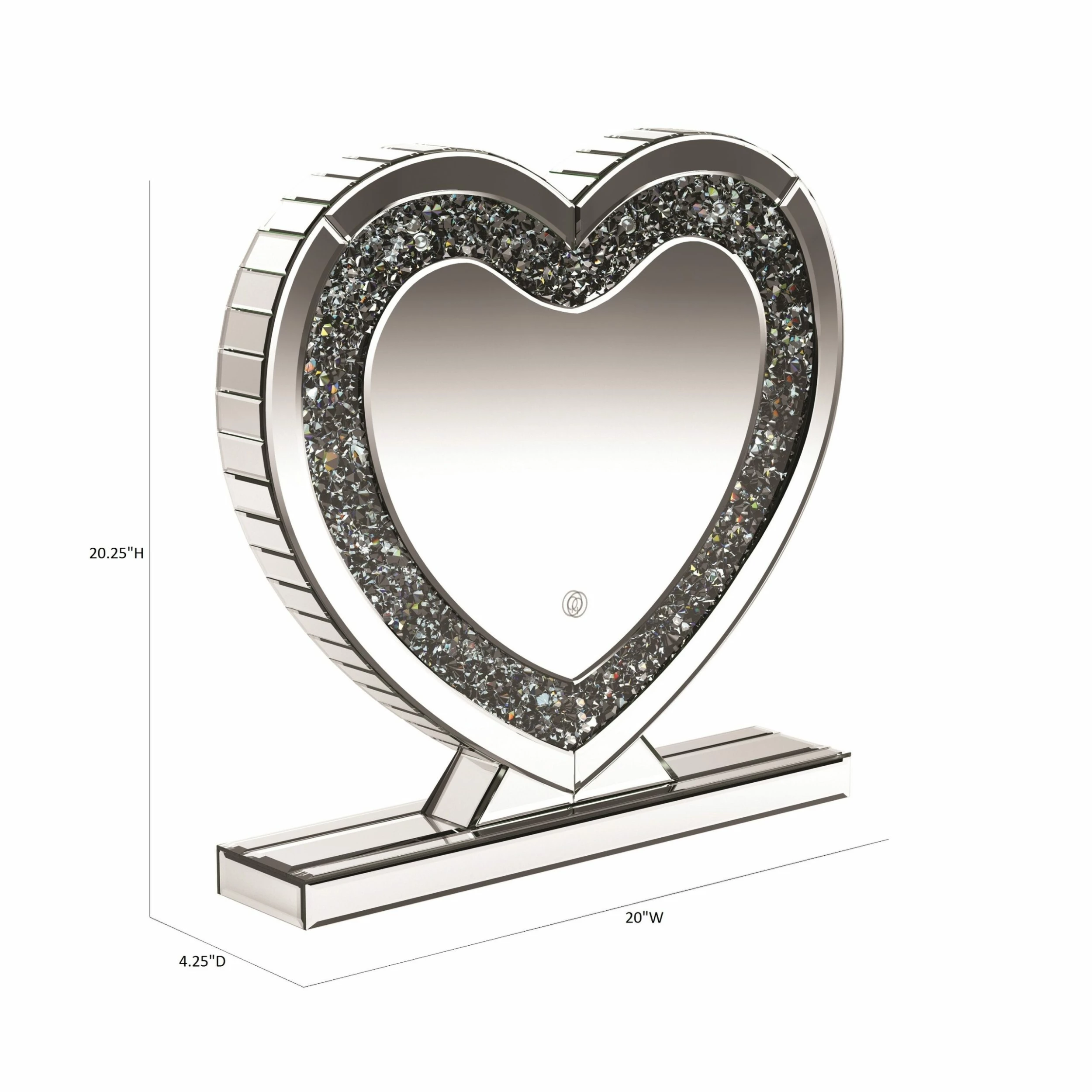 Love the look of your decor when you accent your coffee table or shelf with this heart-shaped table mirror. This freestanding mirror features a sleek silvertone finish to add to the brightening, reflective effect, and the wide stand ensures this mirror stands well for stable display.