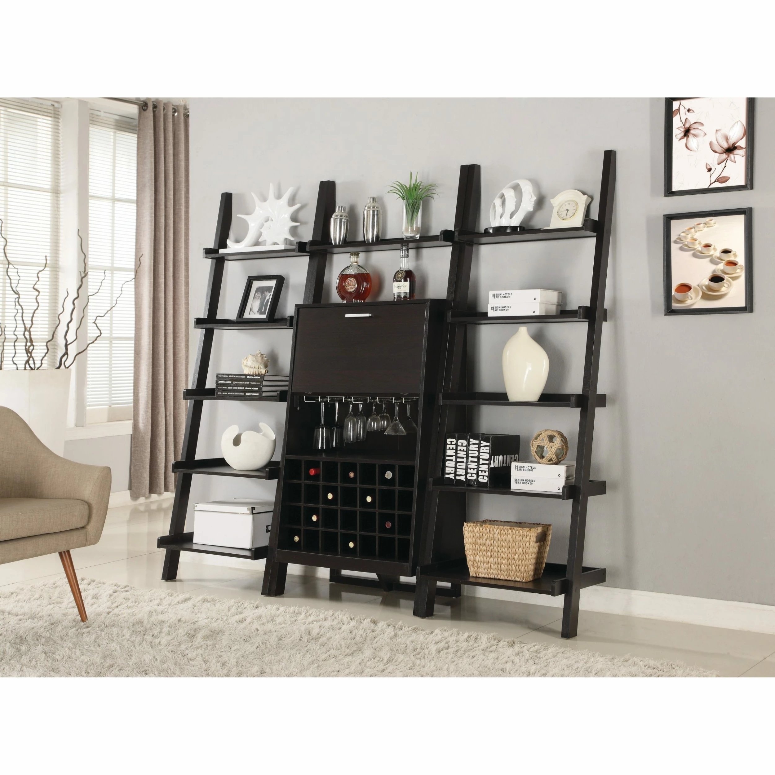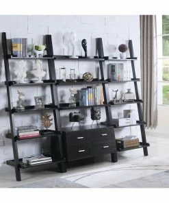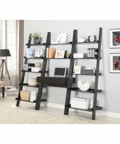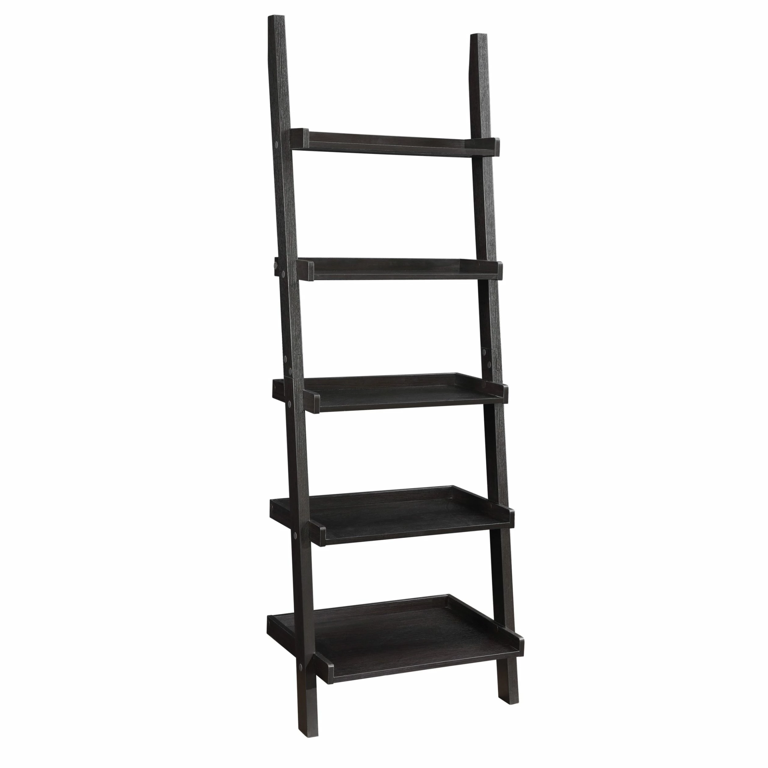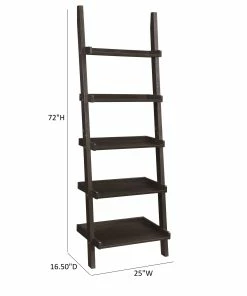 Bring energy and movement to any room with this leaning ladder bookcase in a deep cappuccino finish. Offering versatile transitional style, the bookcase features open shelves of varying depths, creating a leaning ladder effect.