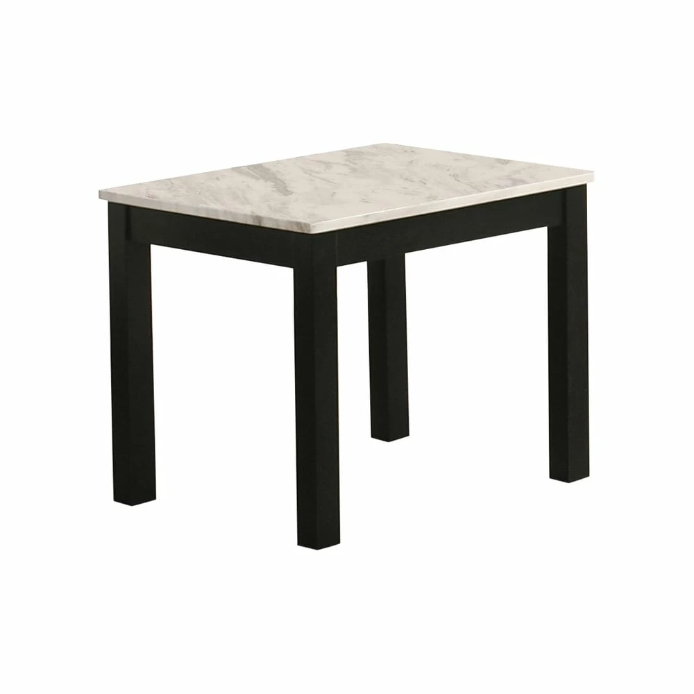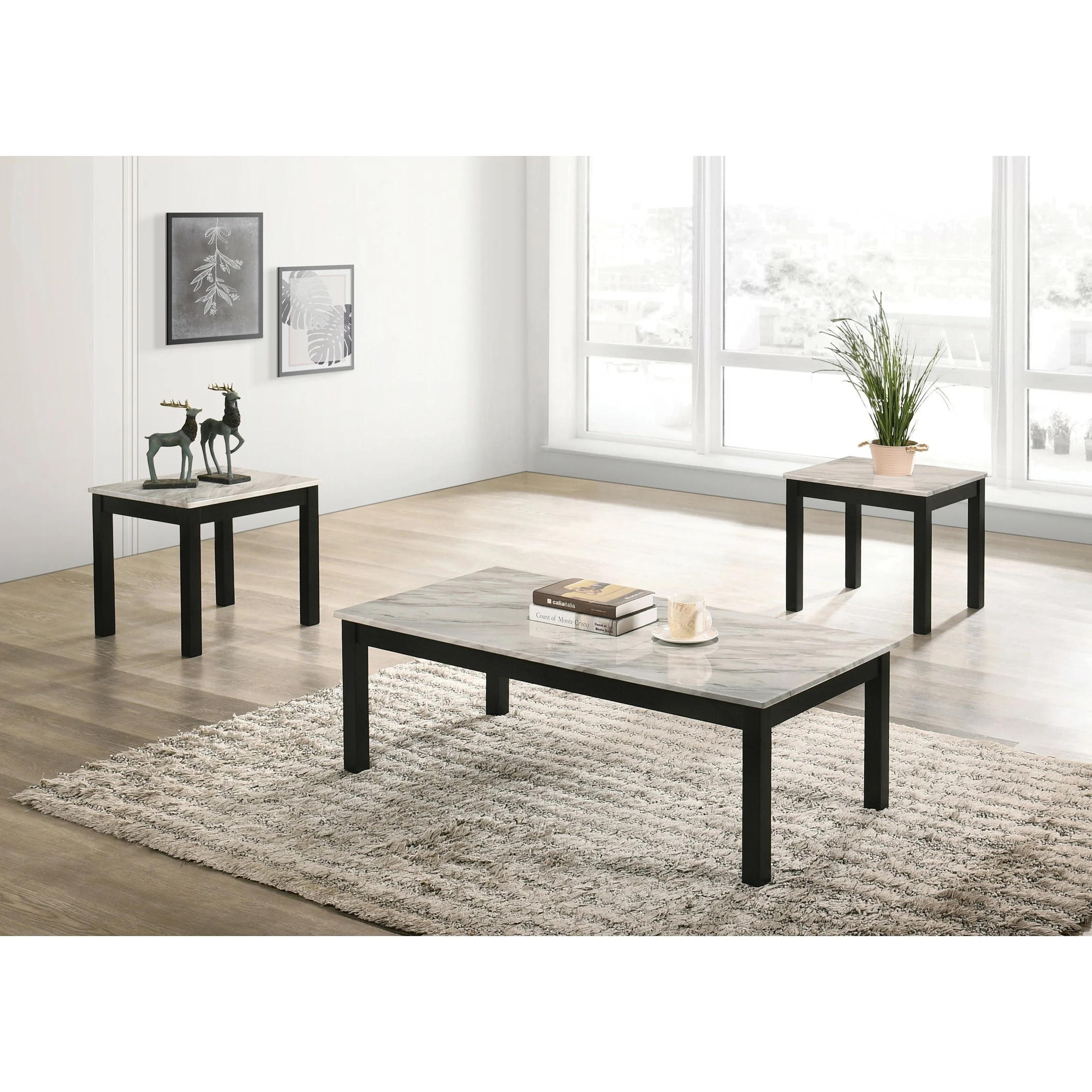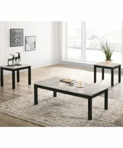 Elegance is the main attraction in this three-piece occasional table set. Ideal for compact spaces, the tabletops are constructed from white faux marble. The white tabletop makes the perfect contrast with the black base and bold black legs. With a clean and simple silhouette, this occasional table set comes with a coffee table and two end tables. Use this two-tone living room table set as a focal point in your space.