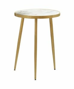 Update your modern home with this round accent table by Coaster. Featuring a goldtone-finished metal frame and a genuine marble top, this table draws inspiration from mid-century design and pieces it together with a modern chic appeal. With its reflective composition and shiny marble, this three-legged table brightens the room while showcasing your home decor.