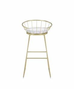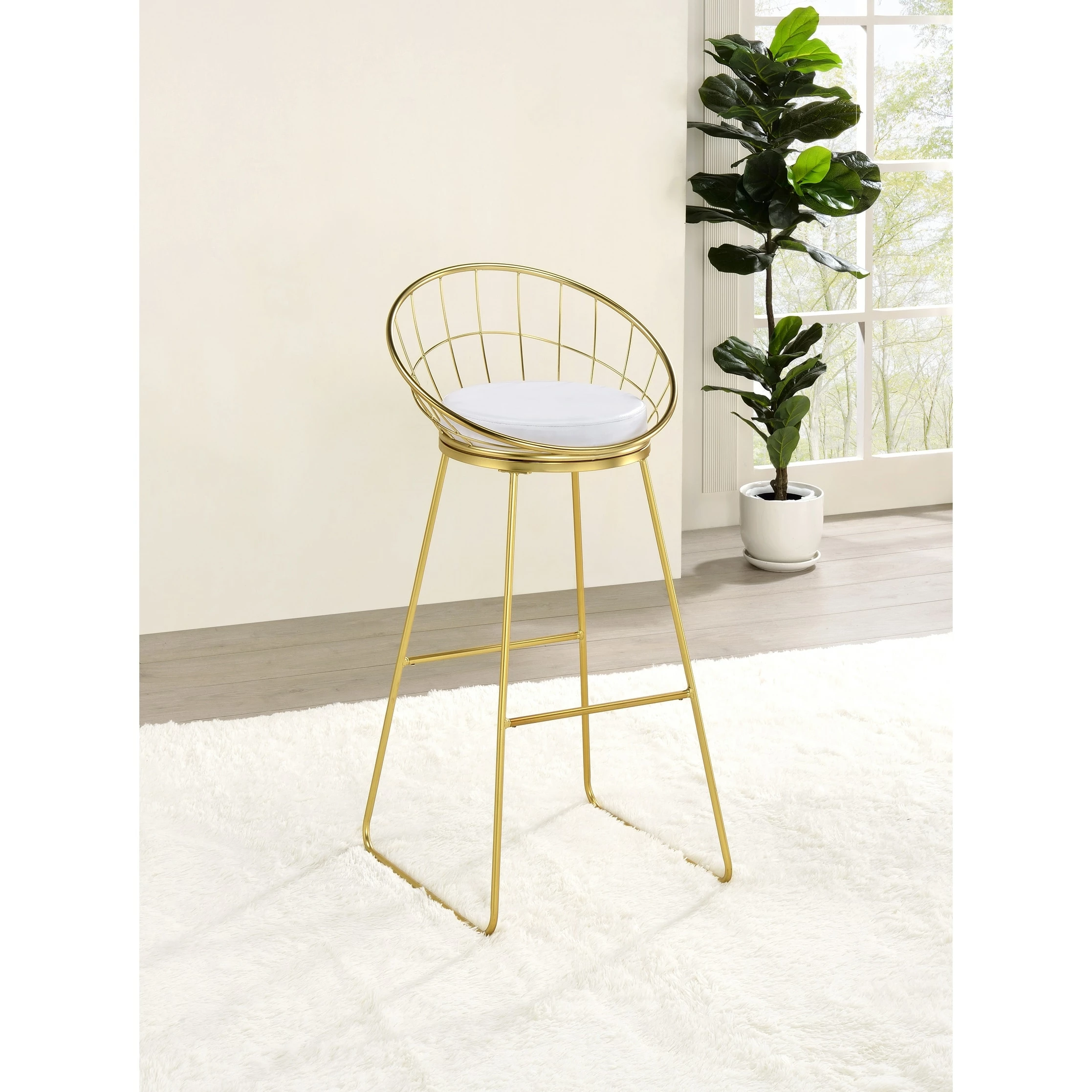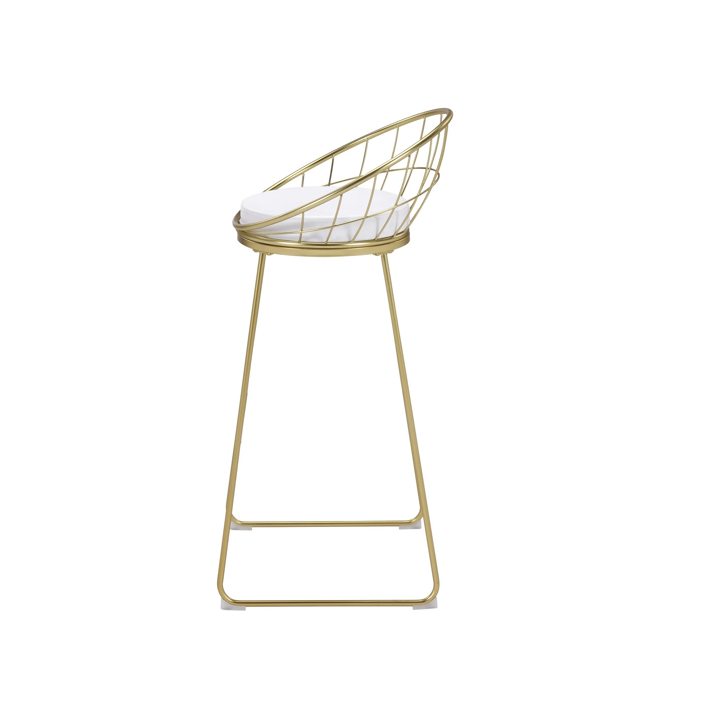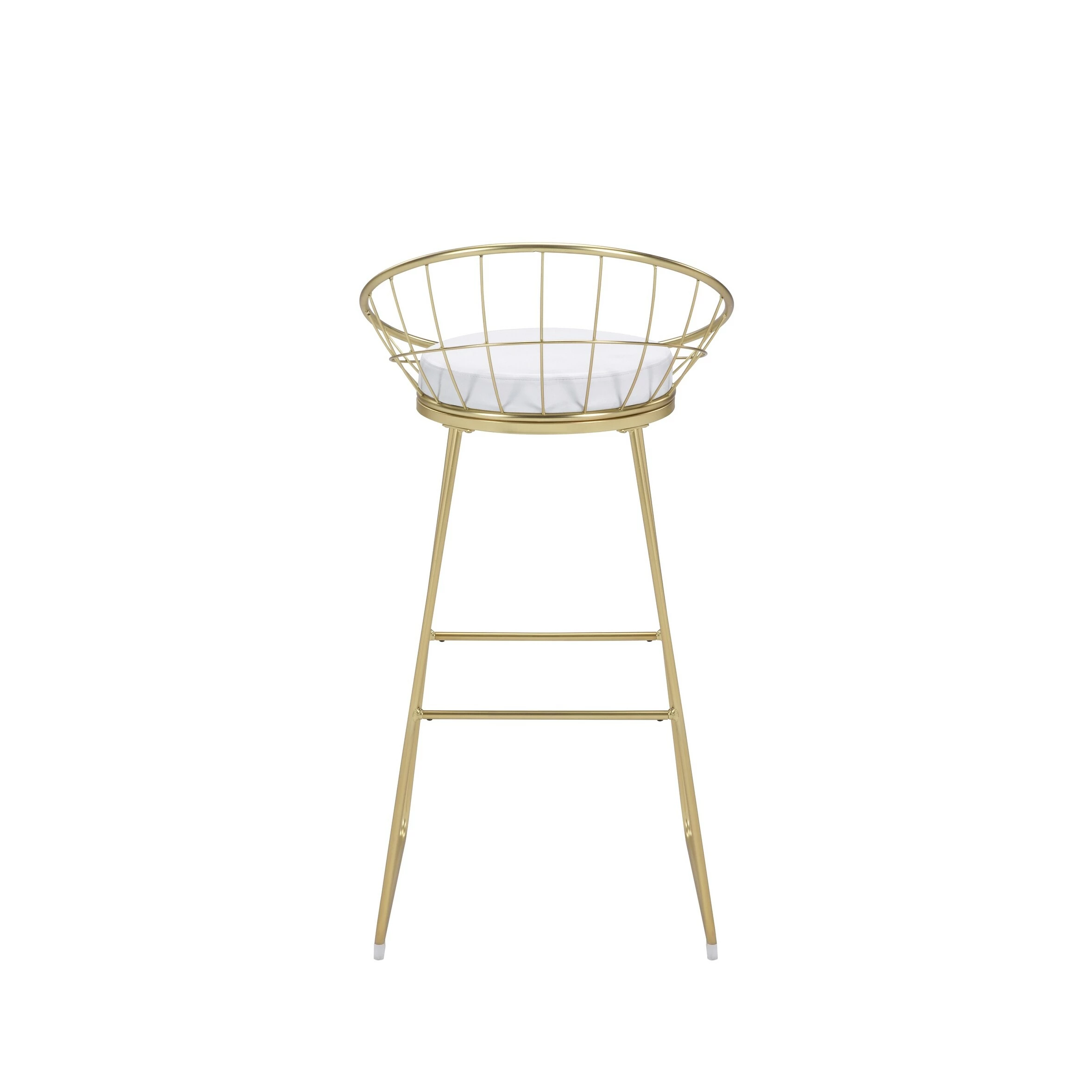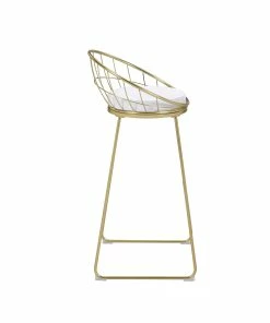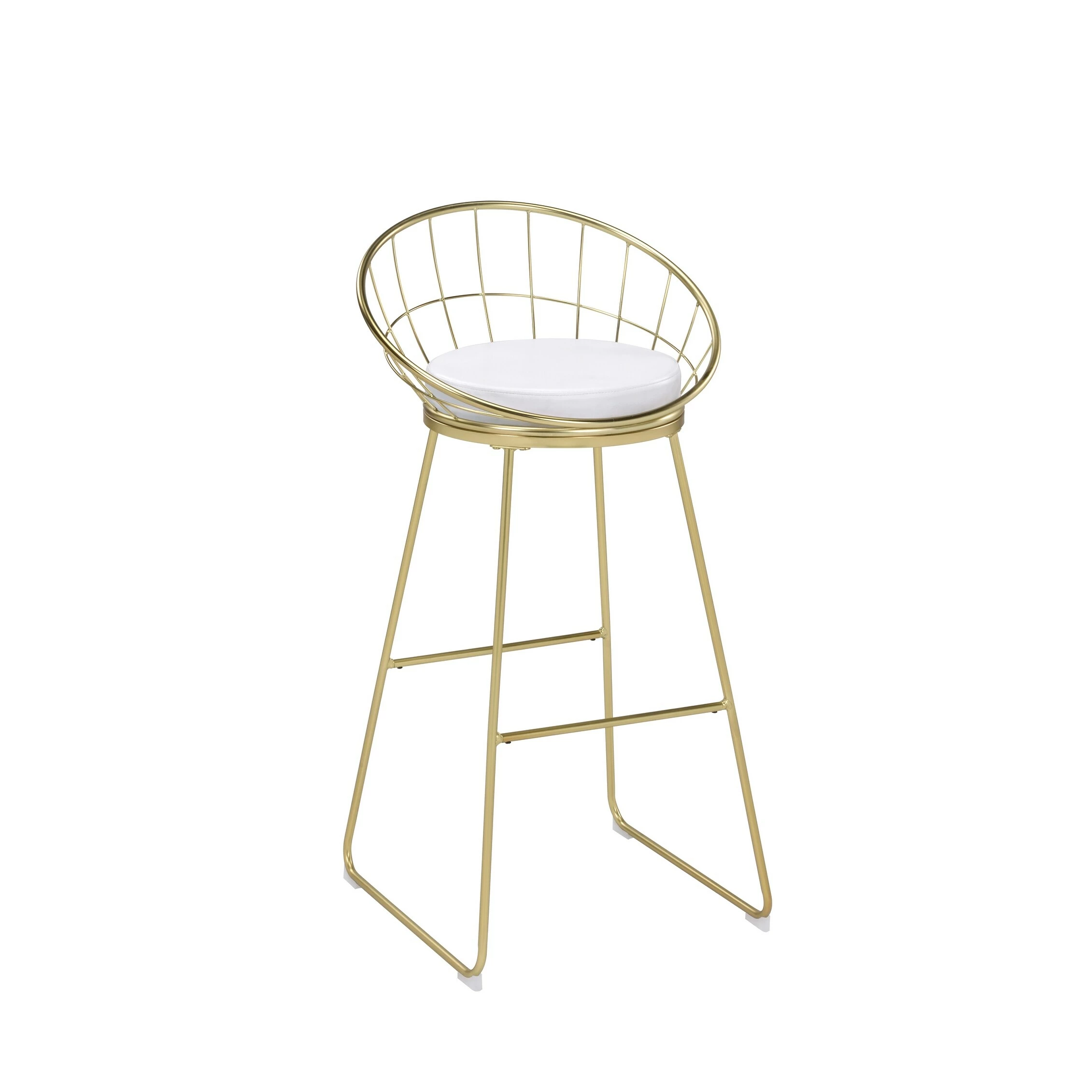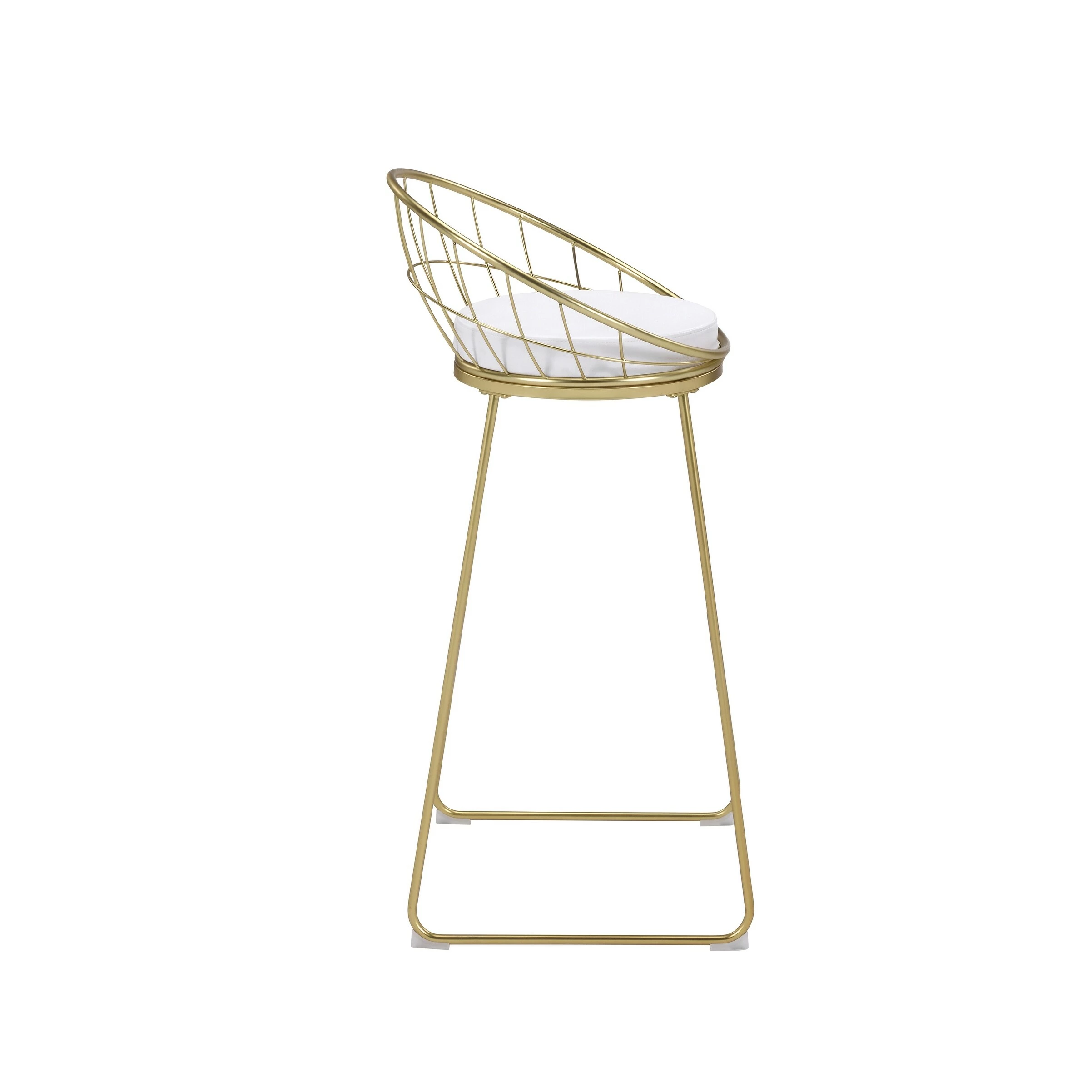 Modern with a retro-inspired vibe, this set of two bar stools are the perfect addition to a Mid Century modern home. With a frame made of heavy gauge steel that is electroplated in finish, each bar stool is built to last many years. On each is a comfortable padded seat cushion, wrapped in a smooth leatherette that is able to complement existing color palettes and offers easy maintenance. In addition, the flared legs and rounded backrest, complete with a grid design, offer a more contemporary style. Pull these bar stools up to a compact bar table or kitchen breakfast bar for a modern look.