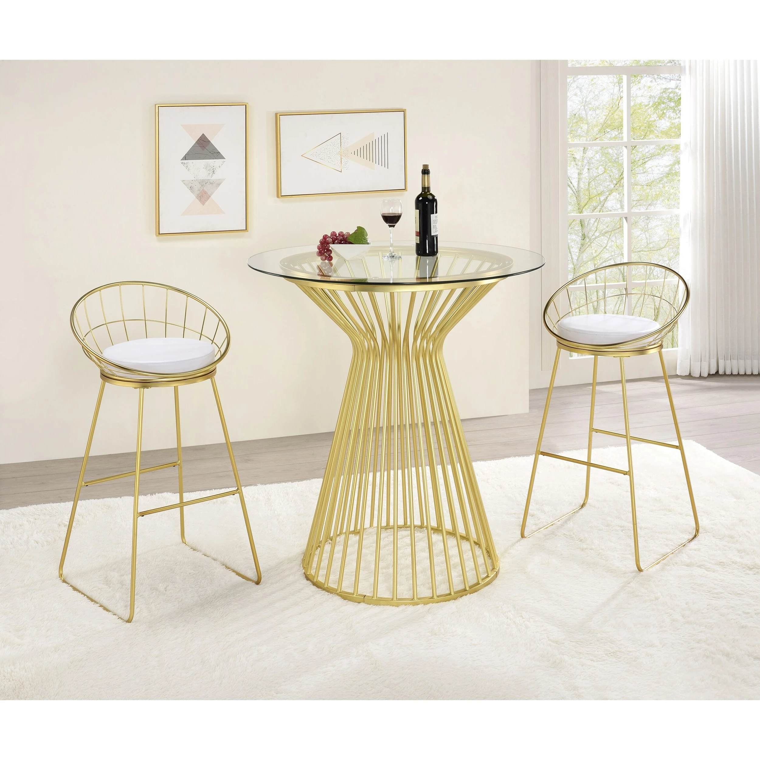 - Set includes: Two (2) bar stools